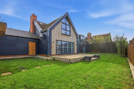 Externally, the recently landscaped rear garden offers a superb outdoor space with a paved terrace ideal for al fresco dining, a manicured lawn and secure fencing, creating a private and peaceful setting perfect for families and entertaining alike.