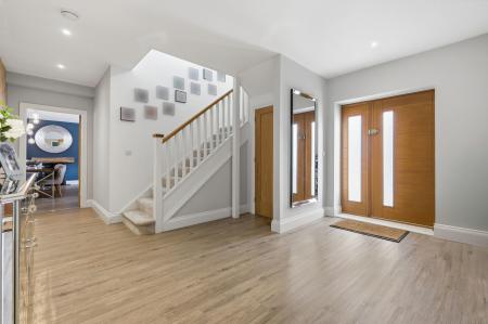 Upon entering, you are greeted by a spacious and welcoming entrance hall, where underfloor heating spans the entire ground floor alongside quality oak internal doors. The feeling of light and space is immediately apparent, setting the tone for the rest of the home.
