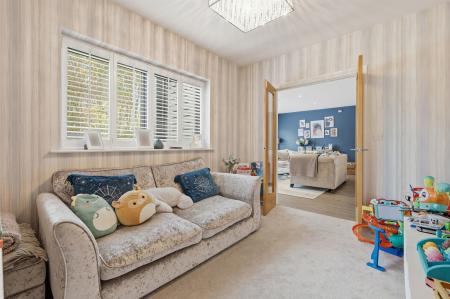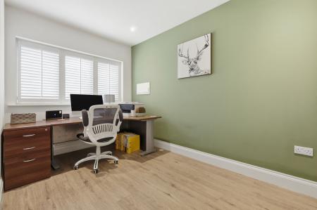 The ground floor accommodation is both practical and versatile, offering a bright sitting room with bi-fold doors, and a well-proportioned home office/study ideal for remote working. A contemporary two-piece cloakroom completes the hallway facilities.