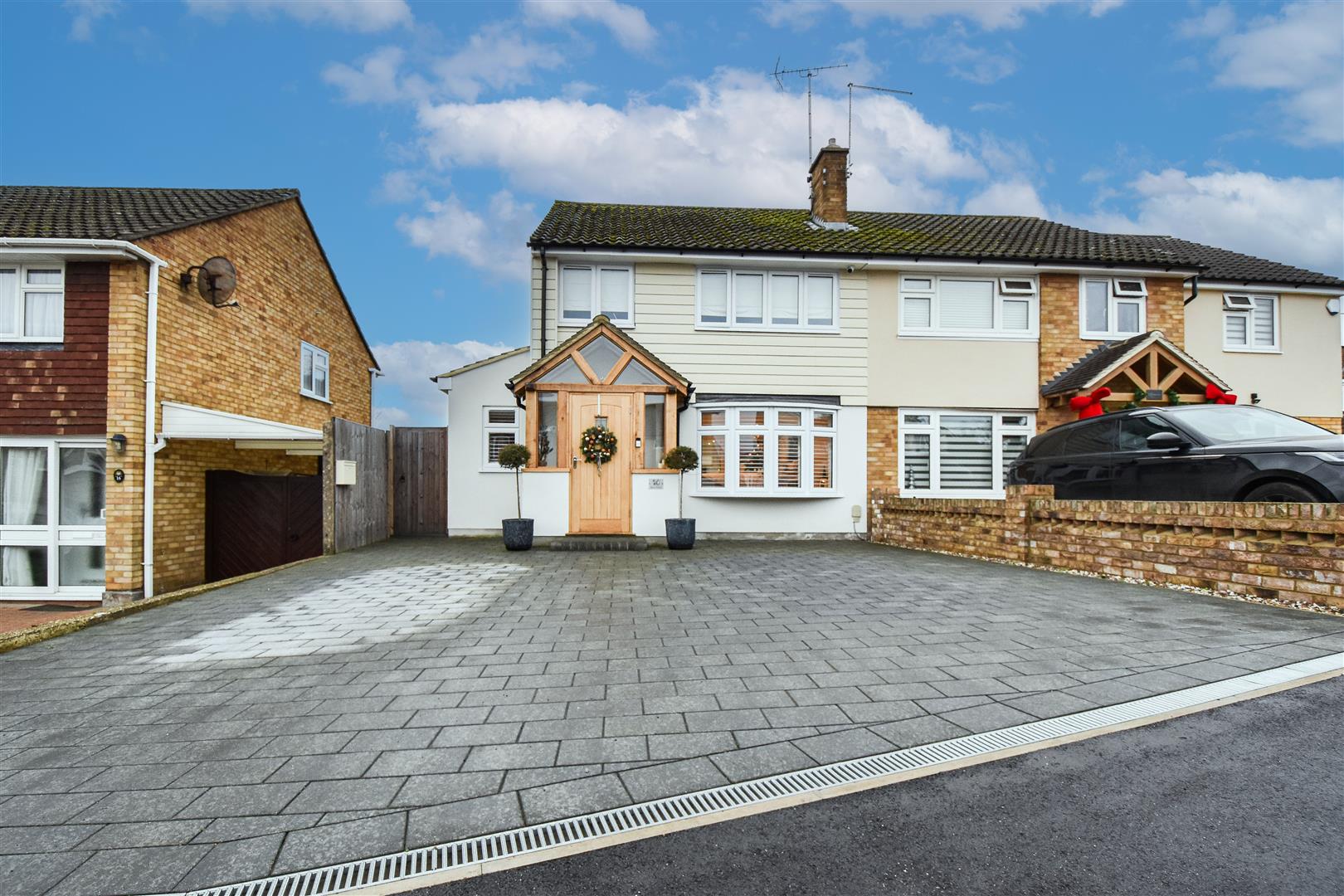 Ideally located within easy reach of the charming village of Doddinghurst, renowned for its well-regarded schools, local shops and historic church, this beautifully presented three-bedroom semi-detached home is finished to an exceptional standard throughout. The property further benefits from a superb open-plan kitchen/family room, featuring bi-folding doors that open directly onto the rear garden.