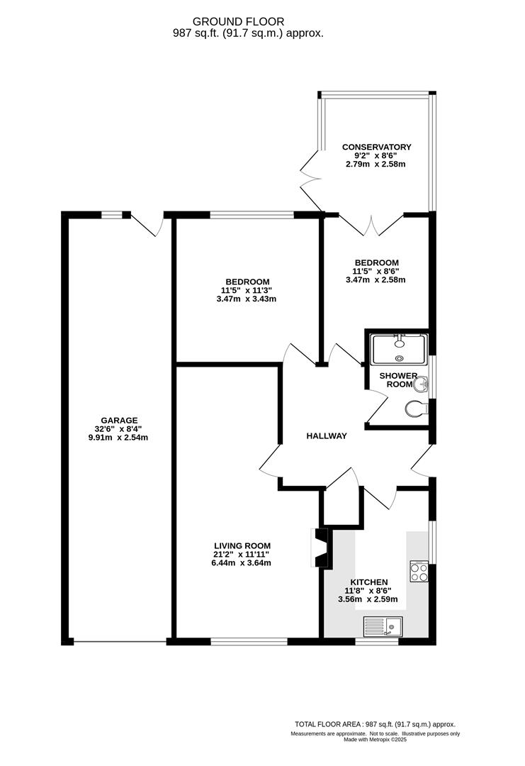 Attached - Double Length Garage - 9.86m x 2.49m (32'4 x 8'2) - Pedestrian door to garden.