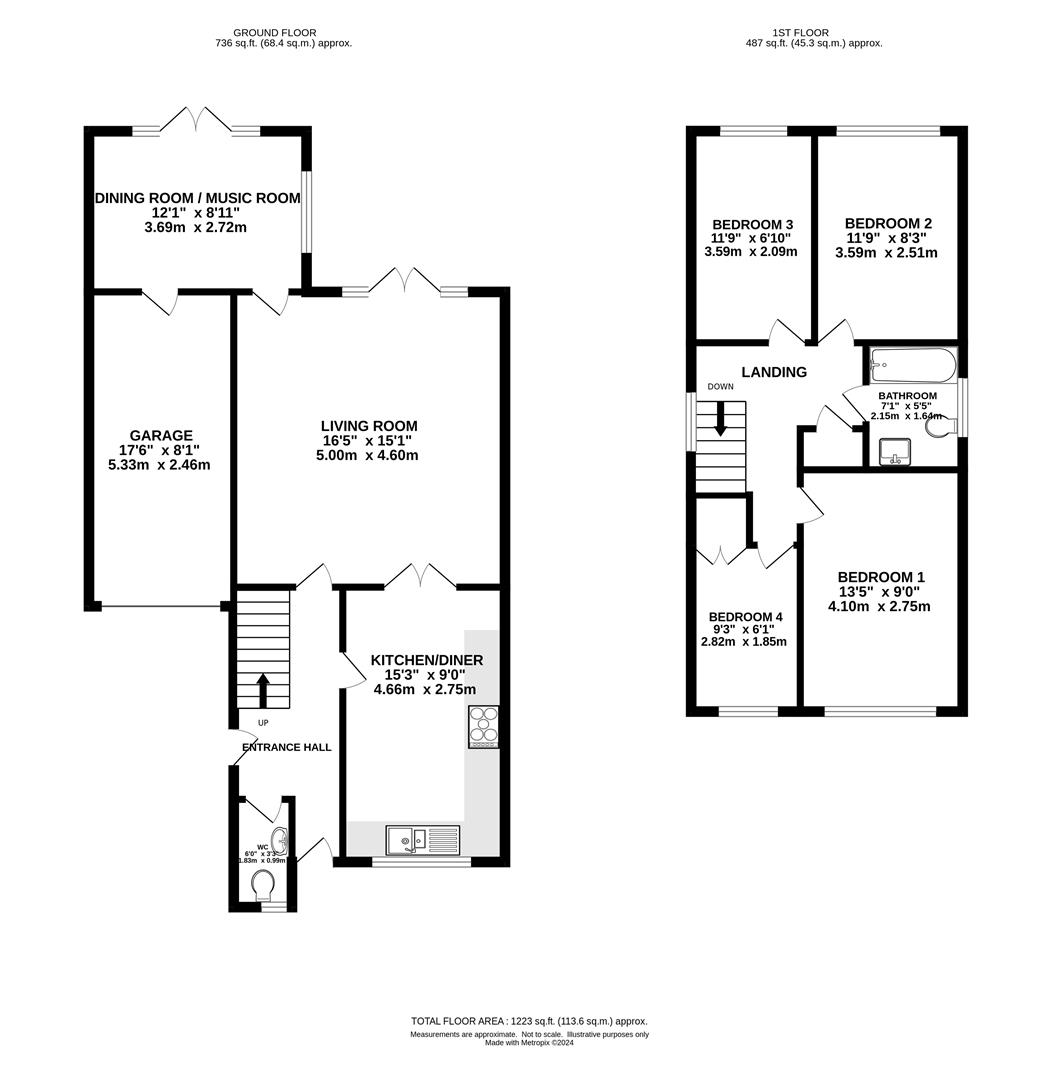 As you enter the hallway there are stairs rising to the first-floor level and access into a ground floor cloakroom which has been fitted with a white suite. A kitchen/diner sits at the front of the property with a window to the front aspect overlooking the driveway. White 'Shaker' style wall and base units with quartz work surface provide ample storage options and there is space for a Range style cooker with extractor above, with further room for a table and chairs, seating four. Double doors from the kitchen open into a bright and spacious living room where there are a further double doors opening onto the rear garden and a door which opens into a further reception room. This reception room would make an ideal family room or dining room, there is also access into the garden from this room via a set of French doors.