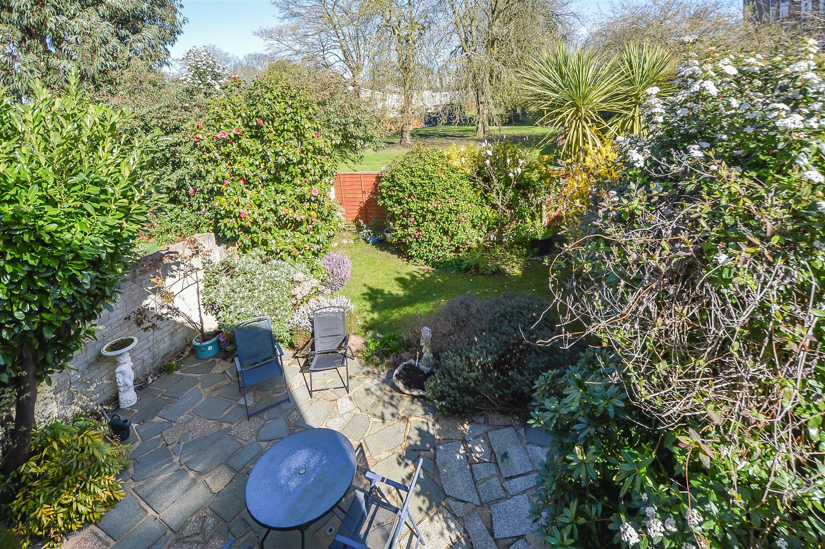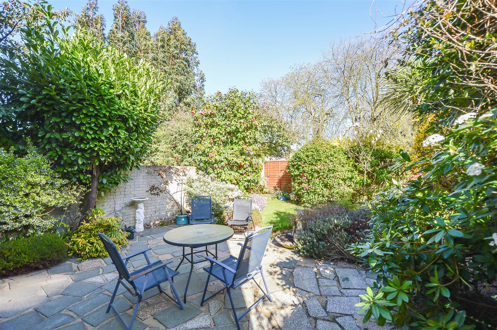 Externally, the attractive rear garden begins with a paved seating area surrounded by mature shrubs, extending onto a well-maintained lawn. At the front, a neatly kept lawn with mature shrub borders enhances the home's kerb appeal, while off-street parking is available in front of the garage.