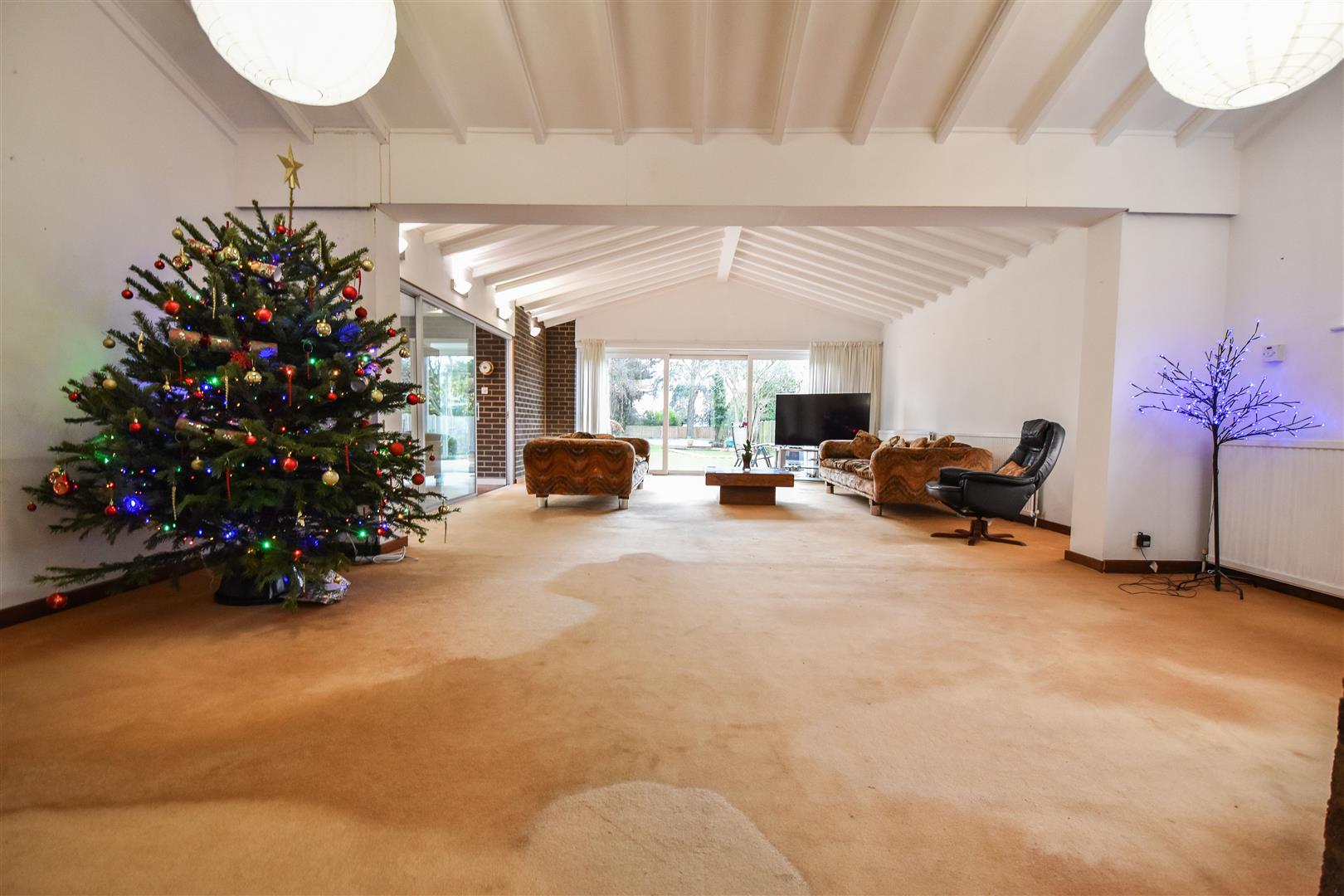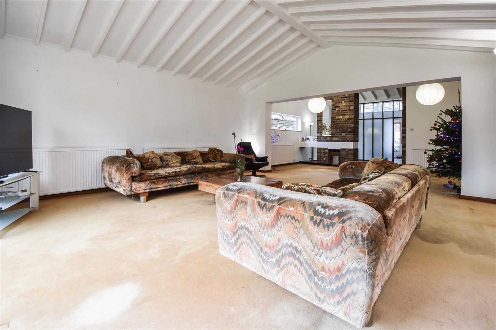 A spacious reception hallway opens into the dining room which in turn opens to an incredibly spacious lounge/family room, measuring 32'1 x 19'2 where you have access into the garden via sliding patio doors. Between the dining room and the lounge/family room is an open brickwork fireplace. From the lounge/family room you have access the sitting room, kitchen and an inner hallway. The sitting room is of a good size with sliding patio doors opening to a courtyard and also has access into one of the bedrooms and the utility room.