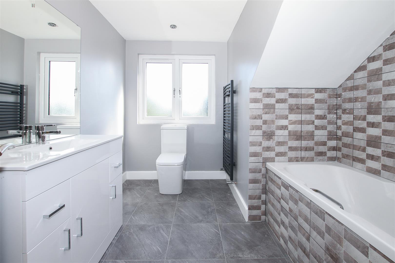 En-Suite Bathroom - 2.87m x 2.41m (9'5 x 7'11) - Fitted with a three piece white suite, paneled bath, closed cupboard WC and vanity wash hand basin, slightly restricted head height.