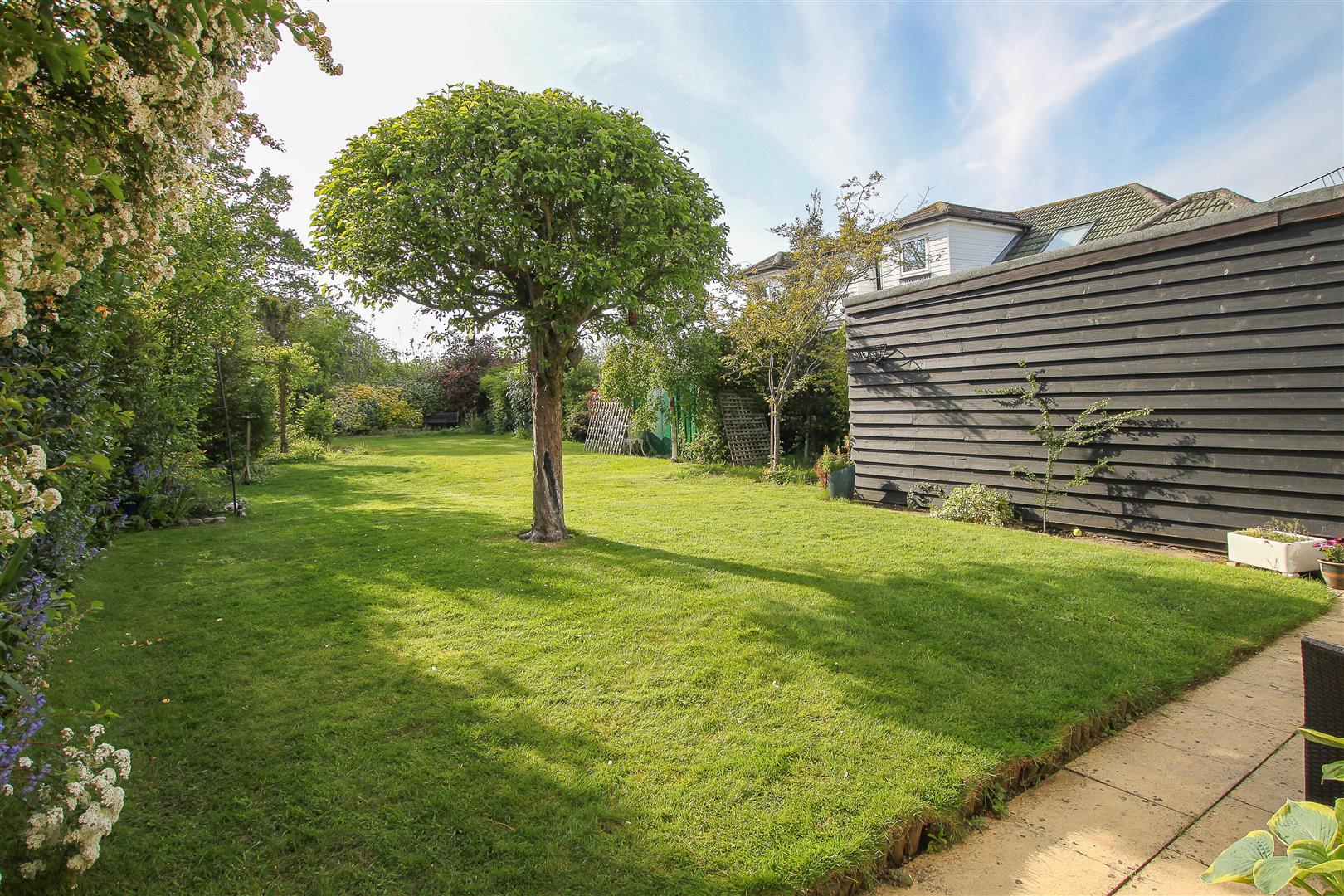 The rear garden is approximately 120' in length and is a good width and has a detached single car garage to the right hand side approached via long own drive. The garden has a variety of mature trees and shrubs and is west facing.