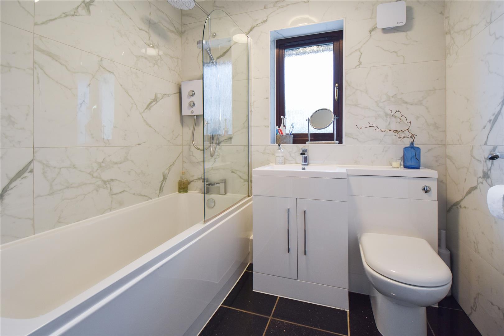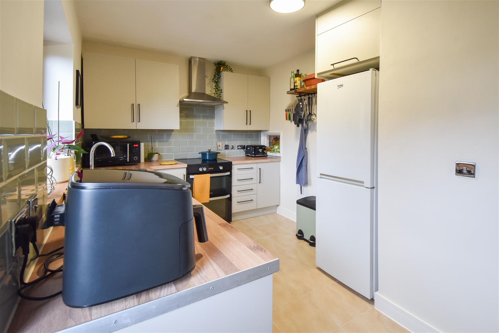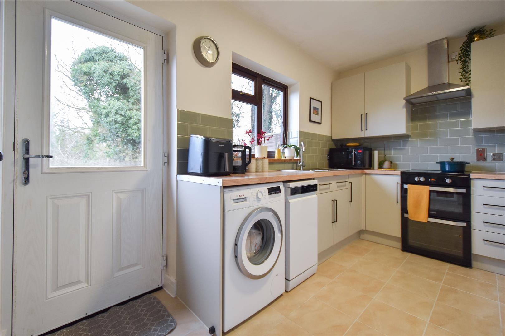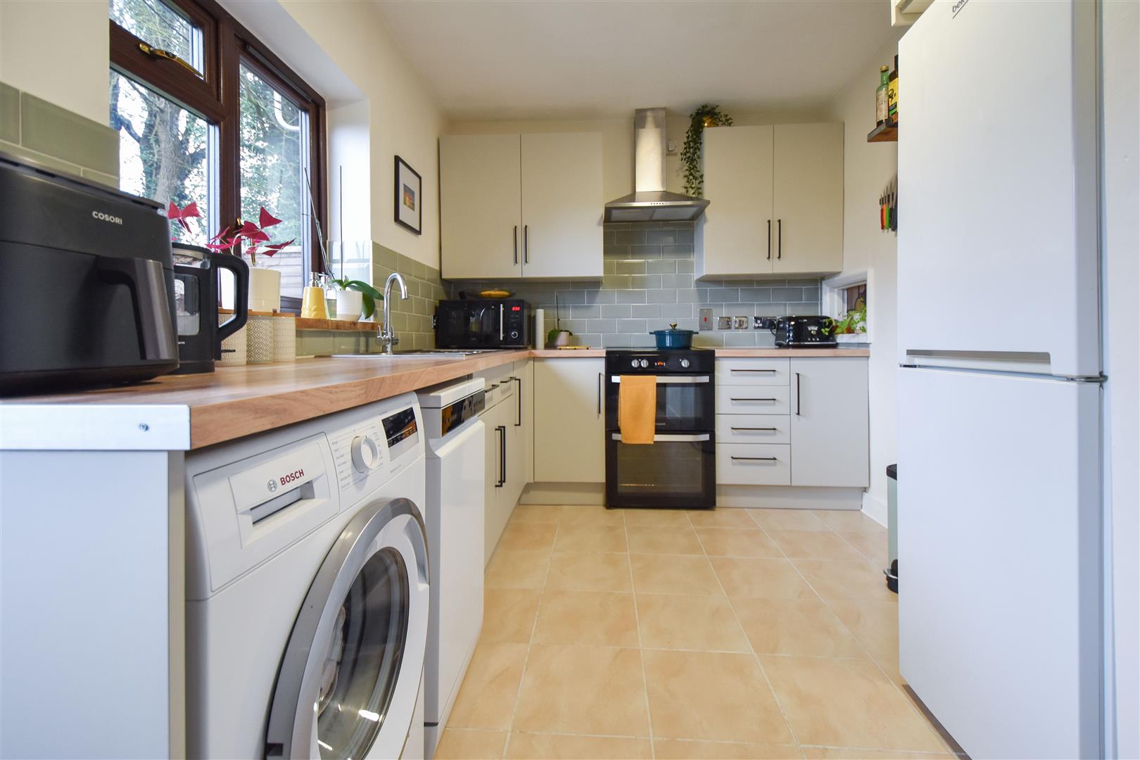 Sitting at the rear of the property you will find a tidy kitchen, fitted with white wall and base units with contrasting work surface over, all providing ample storage space. There is space for a freestanding cooker with extractor above, washing machine, fridge/freezer and a slim line dishwasher. There is access into the rear garden from the kitchen. Finishing the accommodation is a fully tiled bathroom which comprises of a panelled bath with shower over and a wash hand basin and w.c. set into a built-in unit.