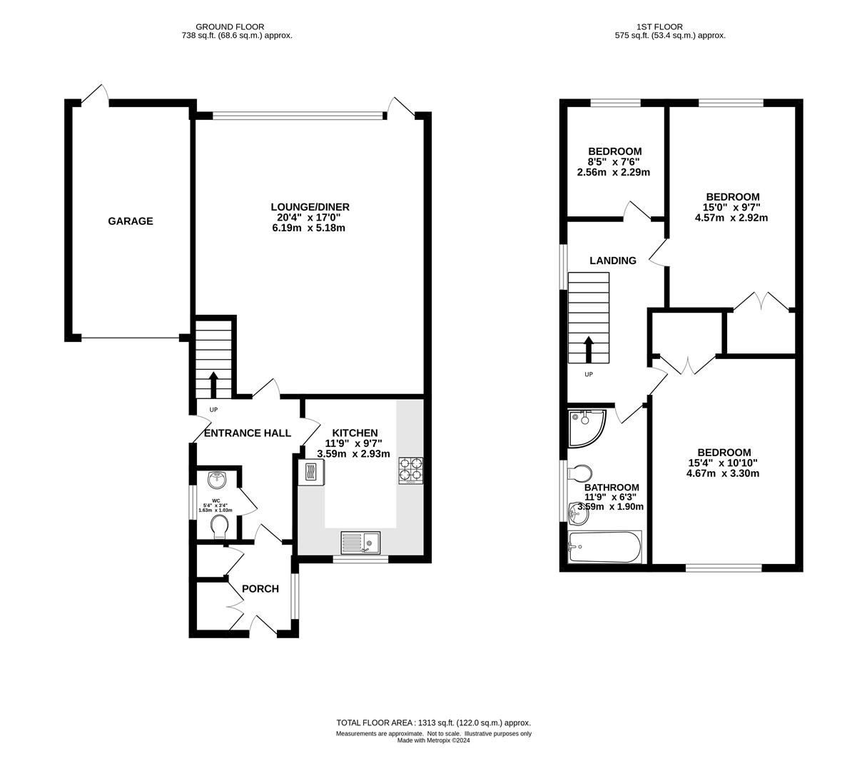 To the front of the property there is a spacious porch with built-in storage, the porch opens into the entrance hall where there is a further exterior door to the side of the property. There are doors from the hallway into the lounge/diner, kitchen and into a ground floor cloakroom which has been fitted in a white suite. Light wood effect wall and base units have been fitted in the kitchen, where there is an integrated oven and electric hob with extractor above, and further space available for free standing appliances. At the rear of the property there is a bright and spacious lounge, measuring 20'4 x 17', a large window and door into the garden provide excellent natural lighting in this room.