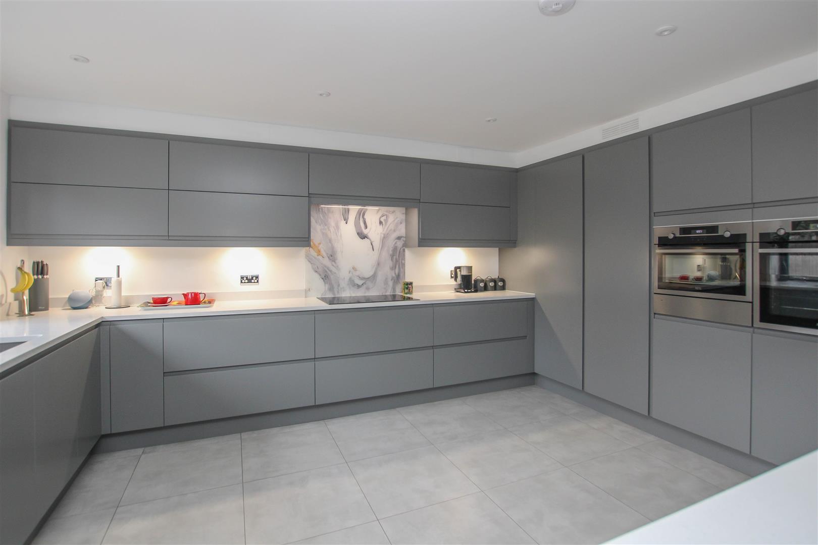Adjoining the living room is a beautifully appointed kitchen, finished to the highest specification. Complete with integrated appliances and a stylish breakfast bar, this space effortlessly blends functionality with modern elegance.