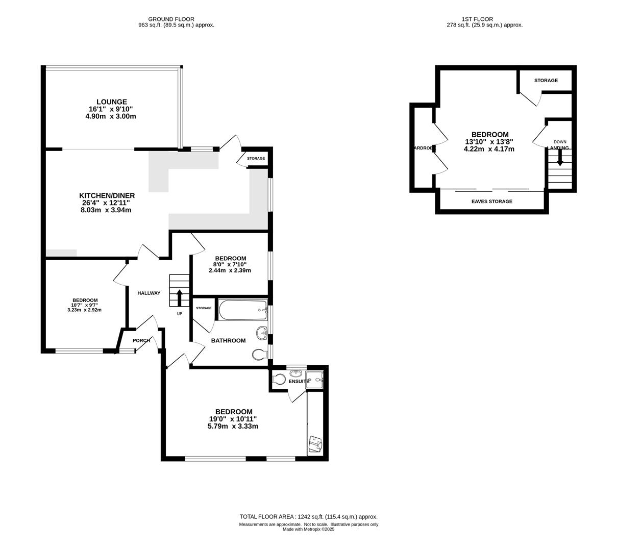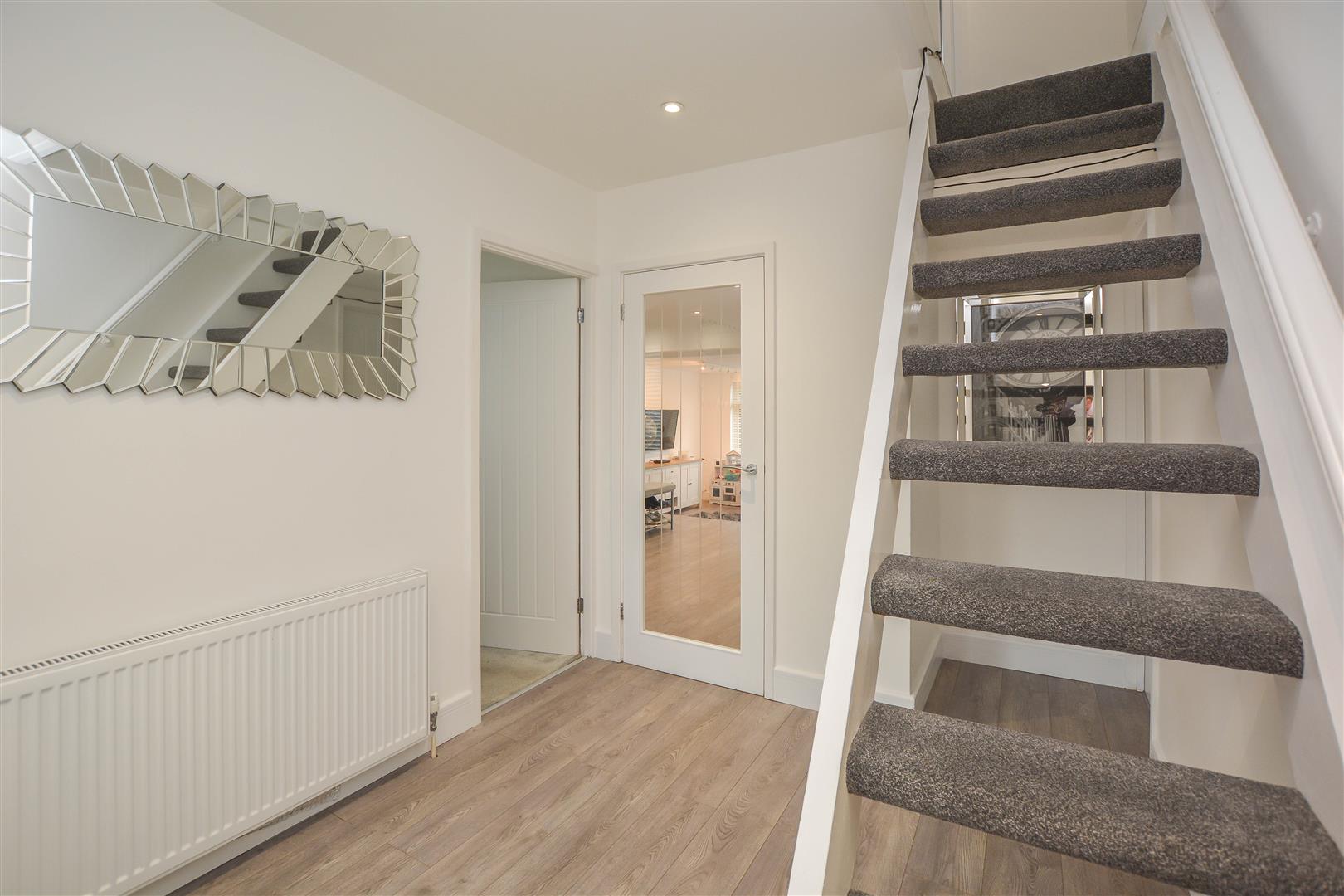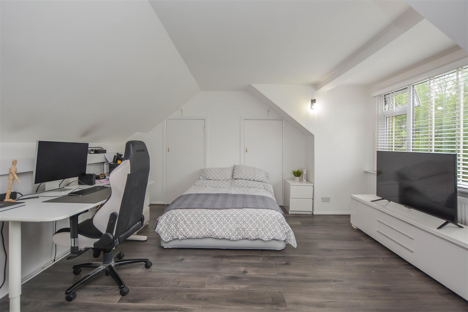 At the front of the property, a generously sized double bedroom benefits from built-in wardrobes and a sleek, contemporary ensuite shower room. Two further well-proportioned bedrooms and a stylish family bathroom complete the ground floor. Upstairs, a spacious fourth double bedroom offers excellent storage and flexibility for use as a guest room, office, or additional living space.