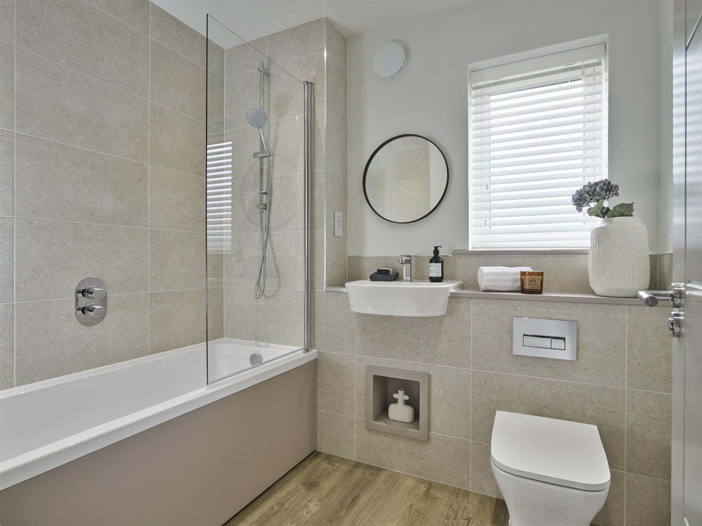 . Full-height tiling around bath and shower enclosures