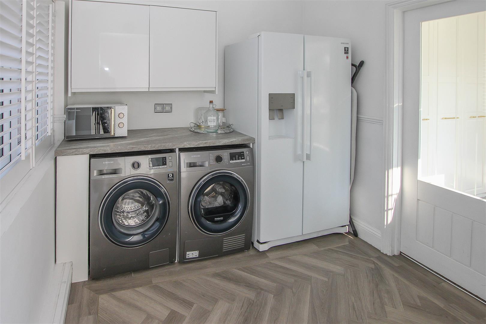 Utility Room - 2.49m x 2.24m (8'2 x 7'4) - Plumbing and space for washing machine, tumble dryer and large double fronted fridge / freezer. Work surface and wall units. Window to front aspect. Door through to :