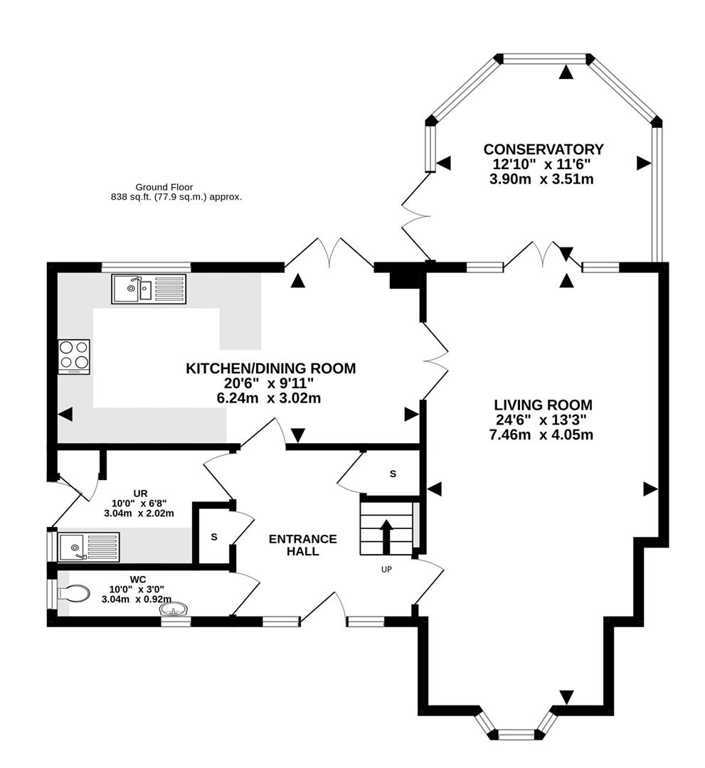 Ground Floor Cloakroom - 3.05m in length (10' in length) - Wash hand basin and w.c.