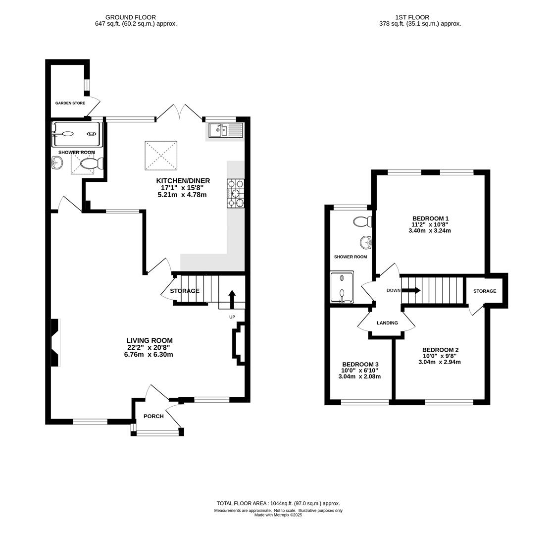 Lounge / Dining - 6.76m x 6.30m (22'2 x 20'8) - Log wood burner. Stairs leading to first floor. Built-in cupboards. Space for dining table. Further doors to kitchen and ground floor shower room.