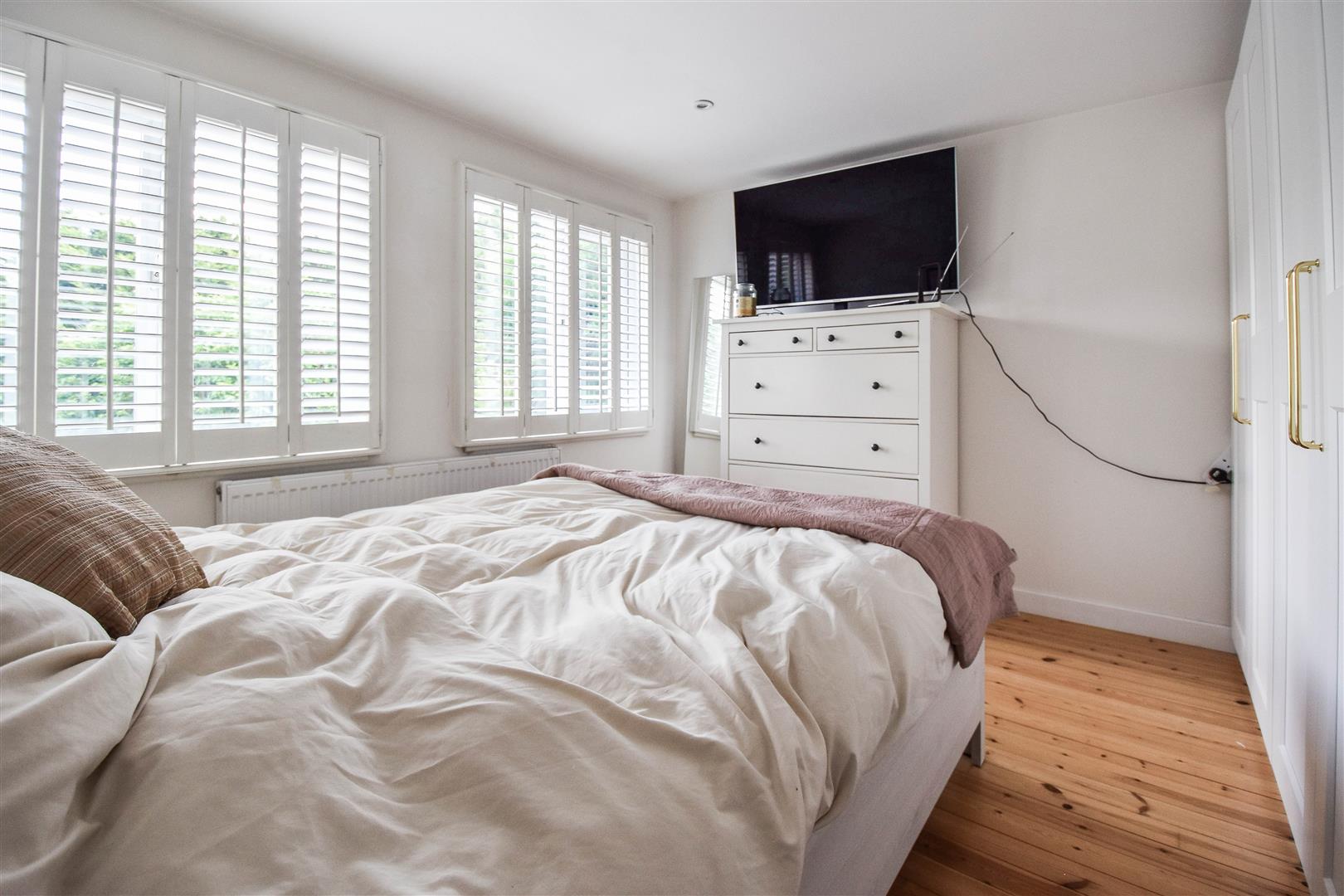 Master Bedroom - 3.40m x 3.25m (11'2 x 10'8) - Double-glazed, shuttered windows to the rear aspect. Exposed wooden floor boards.