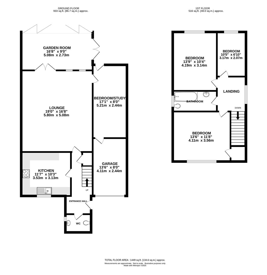 Ground Floor Bedroom / Study - 5.21m x 2.44m (17'1 x 8') - Door with access to garden and further door into garage.