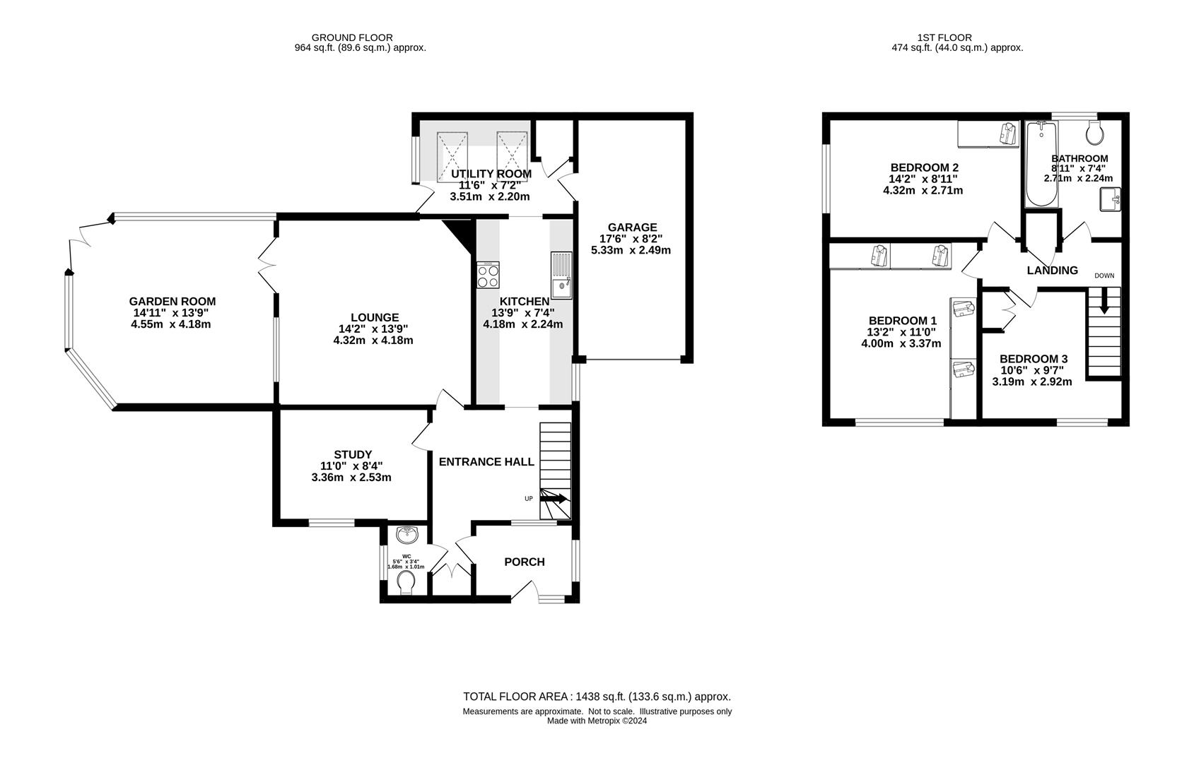 A large and bright porch at the front of the property offers an ideal space for coat and shoe storage. There is further door which opens into the spacious reception hallway, where there are stairs rising to the first floor with storage space under, and further storage available in a double fitted cupboard. There is a modern ground floor cloakroom which is fitted with a white suite comprising: wash hand basin set into a vanity unit and a close coupled w.c. For applicants looking to have a quiet space to work from home there is a separate study. The property has two further reception rooms; a good-sized lounge which in turn has double doors through to the garden room; a lovely room with high pitched roof and UPVC windows overlooking the garden. A well-fitted kitchen has a good range of oak wall and base units with glass display cabinets and end shelving, and includes integrated double oven, microwave and hob with extractor above. There is also a breakfast bar with seating for two. Off the kitchen there is a large utility room with wall and base units, sink unit and larder cupboard, this room has access into the garden and to the rear of the garage.