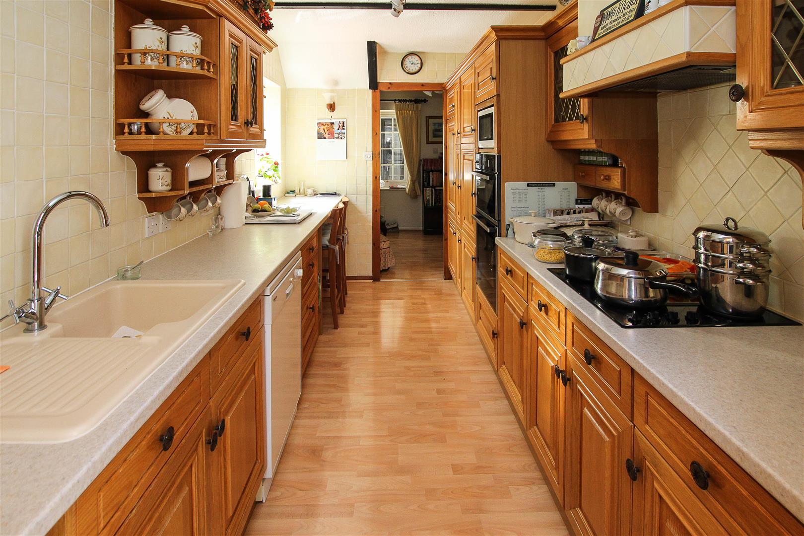 Kitchen - 4.19m x 2.24m (13'9 x 7'4) - Pine and base units, with glass display cabinets and end shelving providing ample storage. Integrated double ovens and microwave, hob and extractor above. Breakfast bar with seating for two. Open through to :