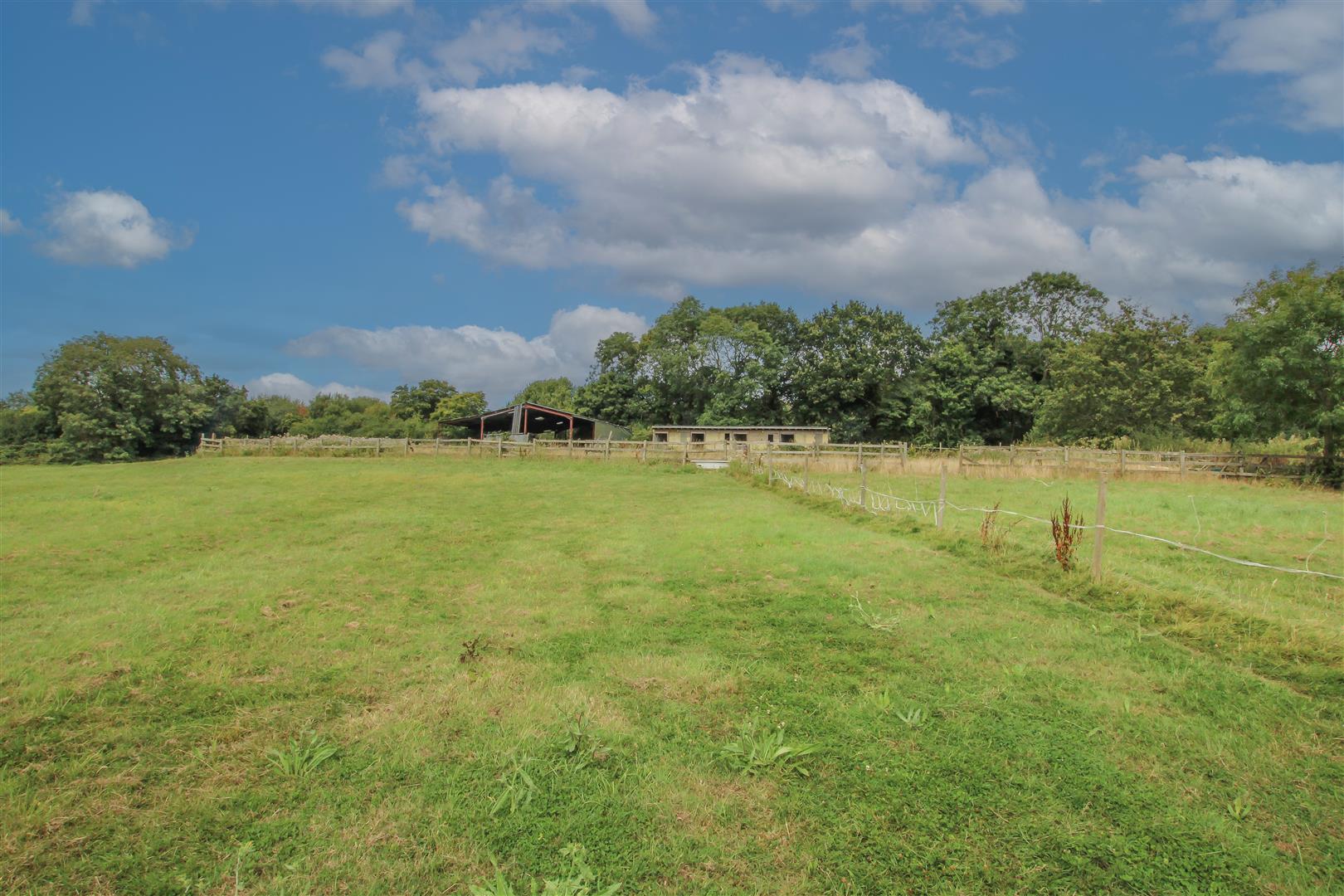 The land includes a stable block and barn, providing ample space for equestrian or agricultural pursuits. The existing structures add to the charm of the property and present a wealth of potential for future development.