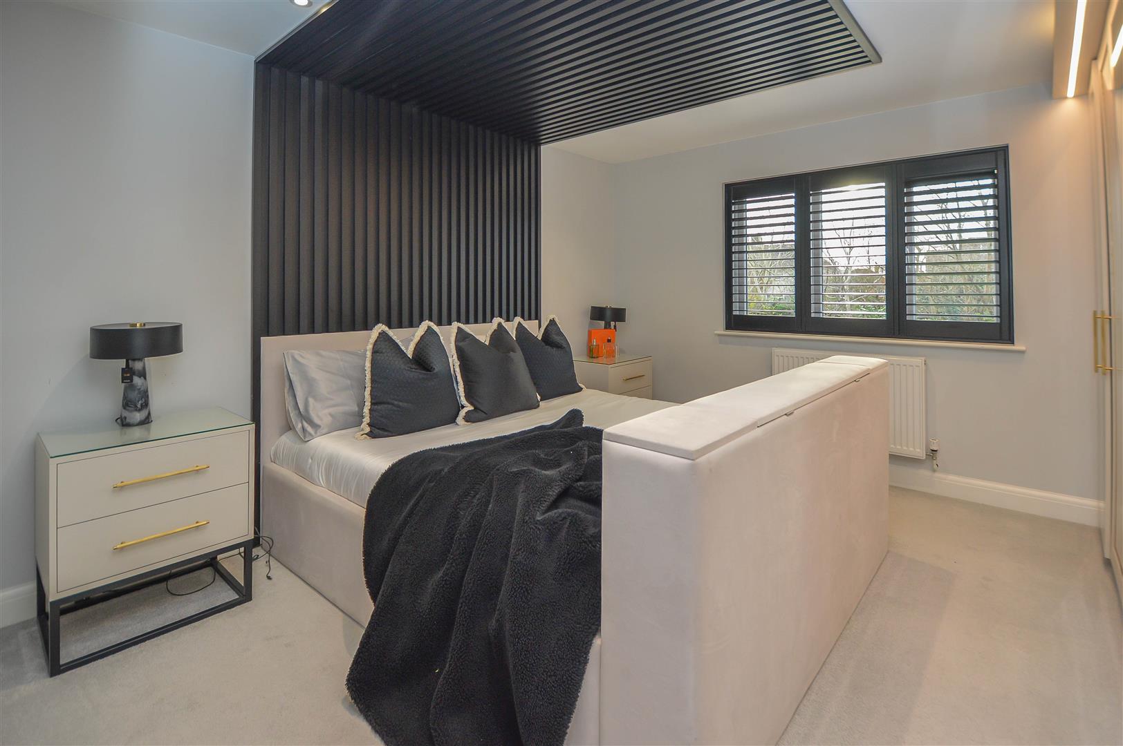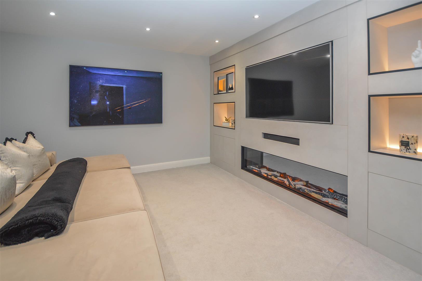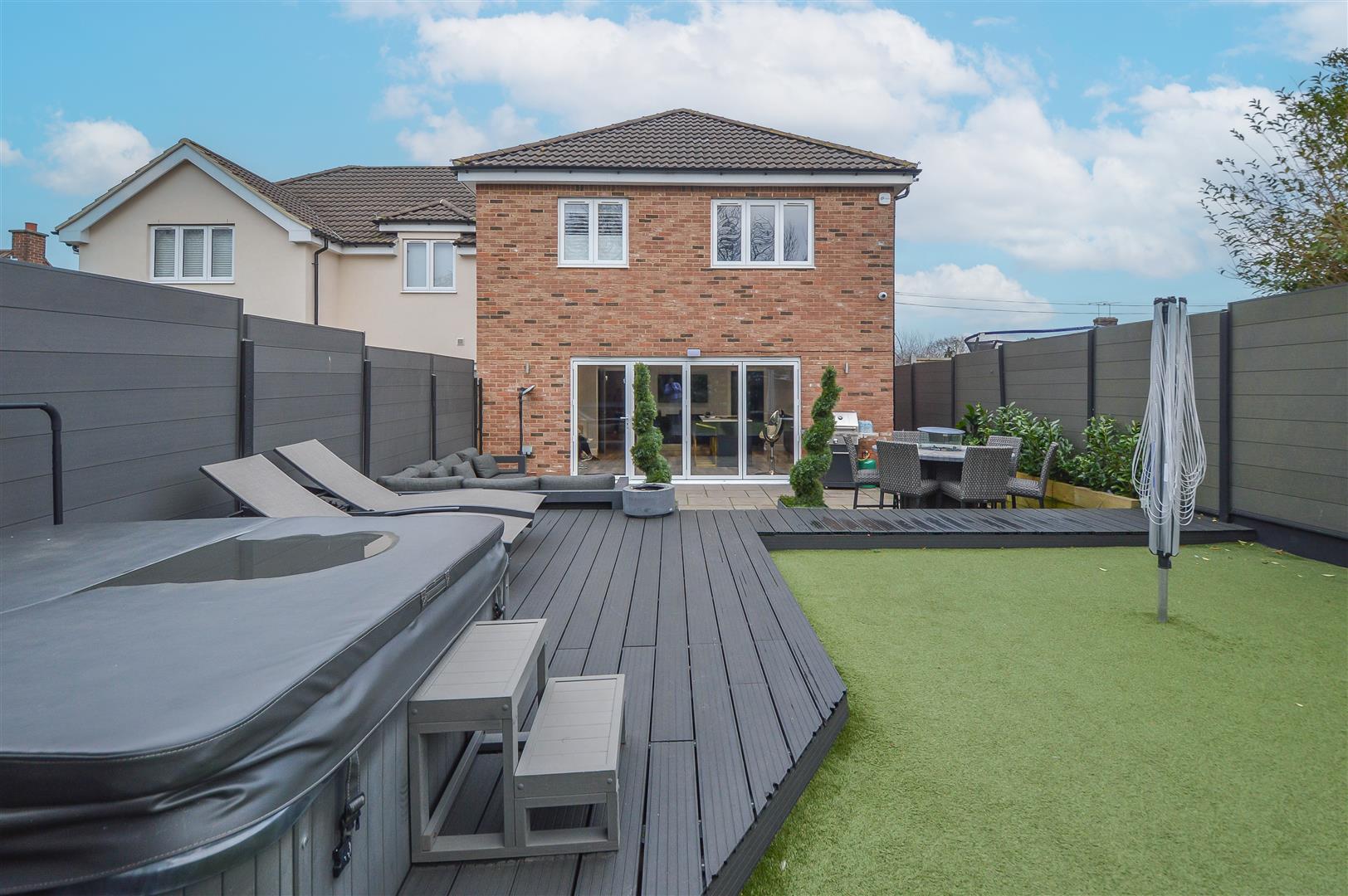 Externally, the rear garden is designed for both relaxation and entertaining. A spacious paved seating area steps up to an elegant, decked lounge space, complemented by a low-maintenance artificial lawn. At the garden's base, a self-contained annexe with shower room offers versatile accommodation, ideal for guests or a home office. To the front, a generously sized block-paved driveway provides ample off-street parking, completing this exceptional family home.