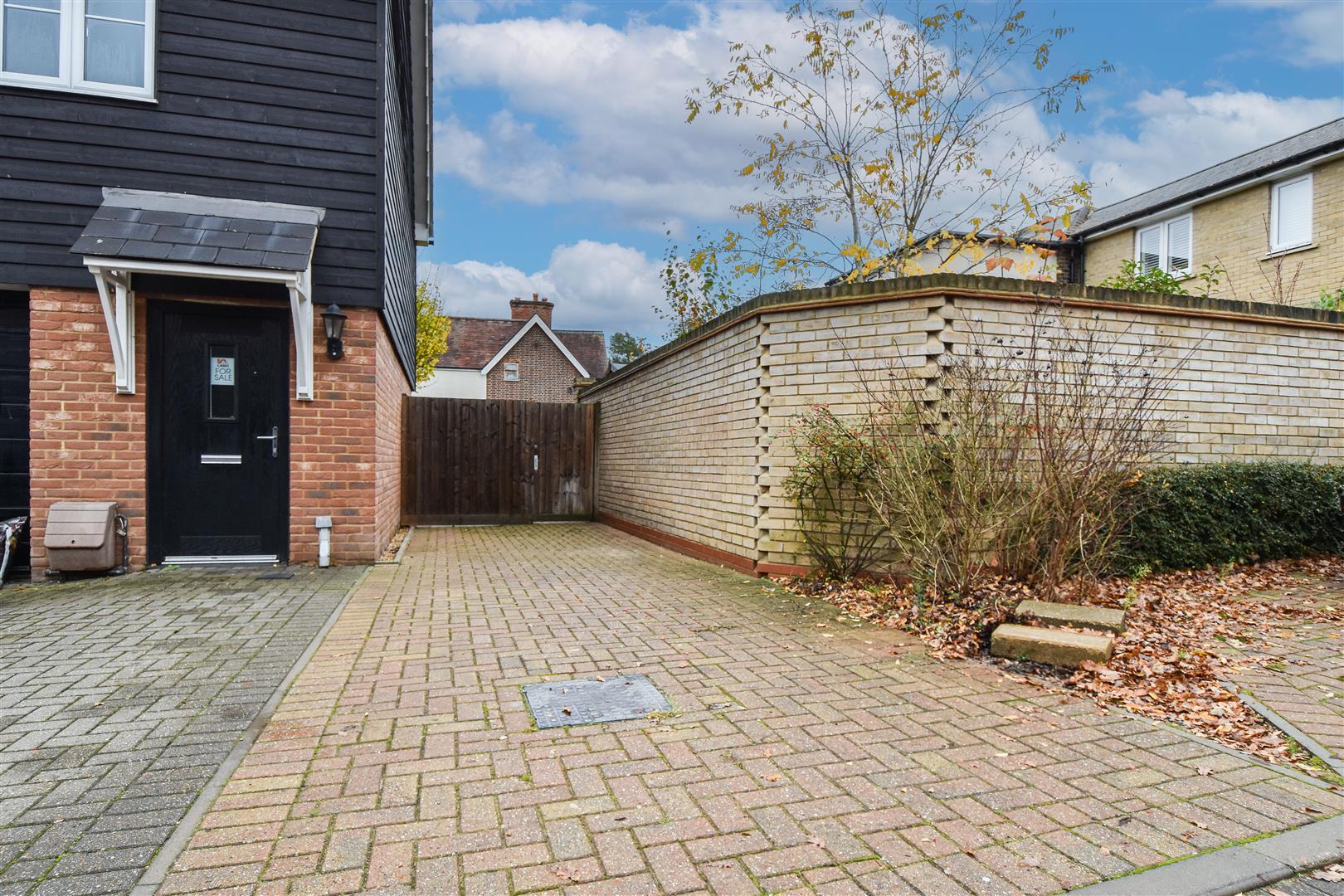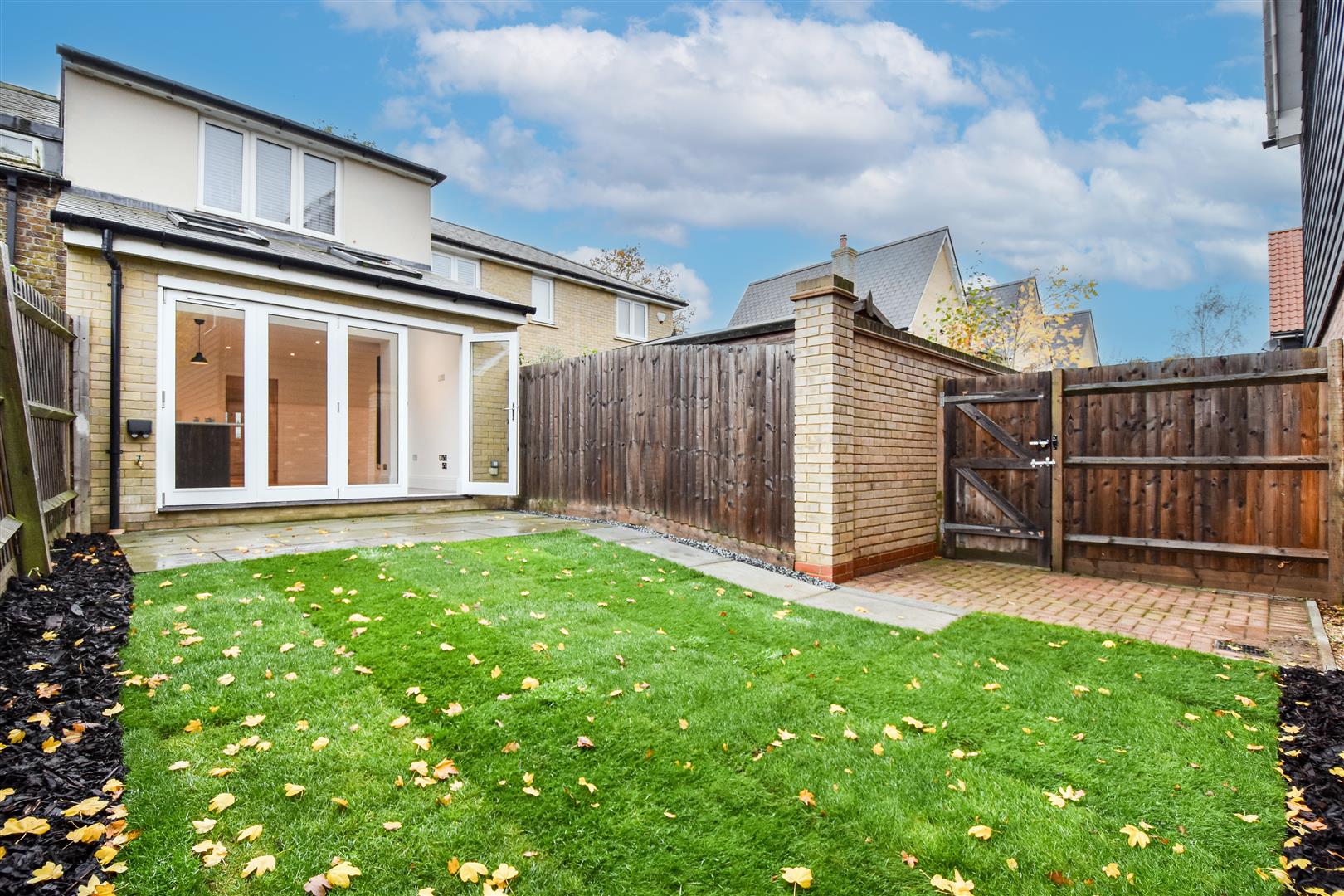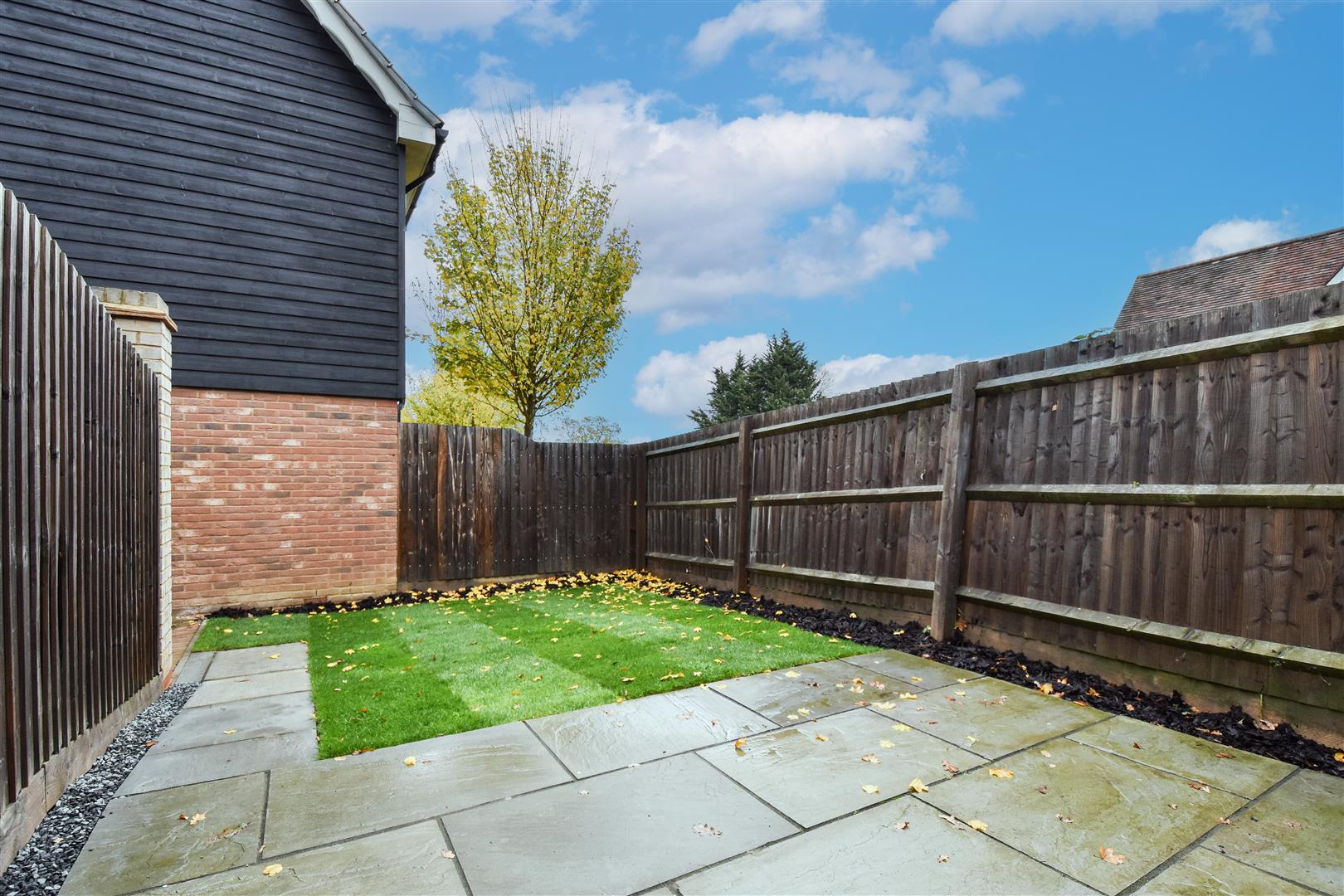 Exterior - Rear Garden - Paved patio leading into lawn. Side access (accessible from Rainbird Place)