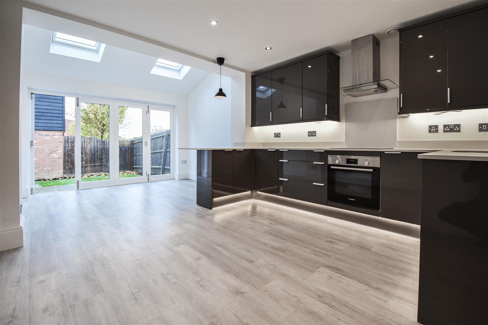 Kitchen / Diner - 6.27m x 3.81m (20'7 x 12'6) - Modern, black gloss wall and base units with contrasting work surface over. Peninsular breakfast bar with seating space. Open plan to the dining area where you find bi-folding doors opening onto the rear garden.