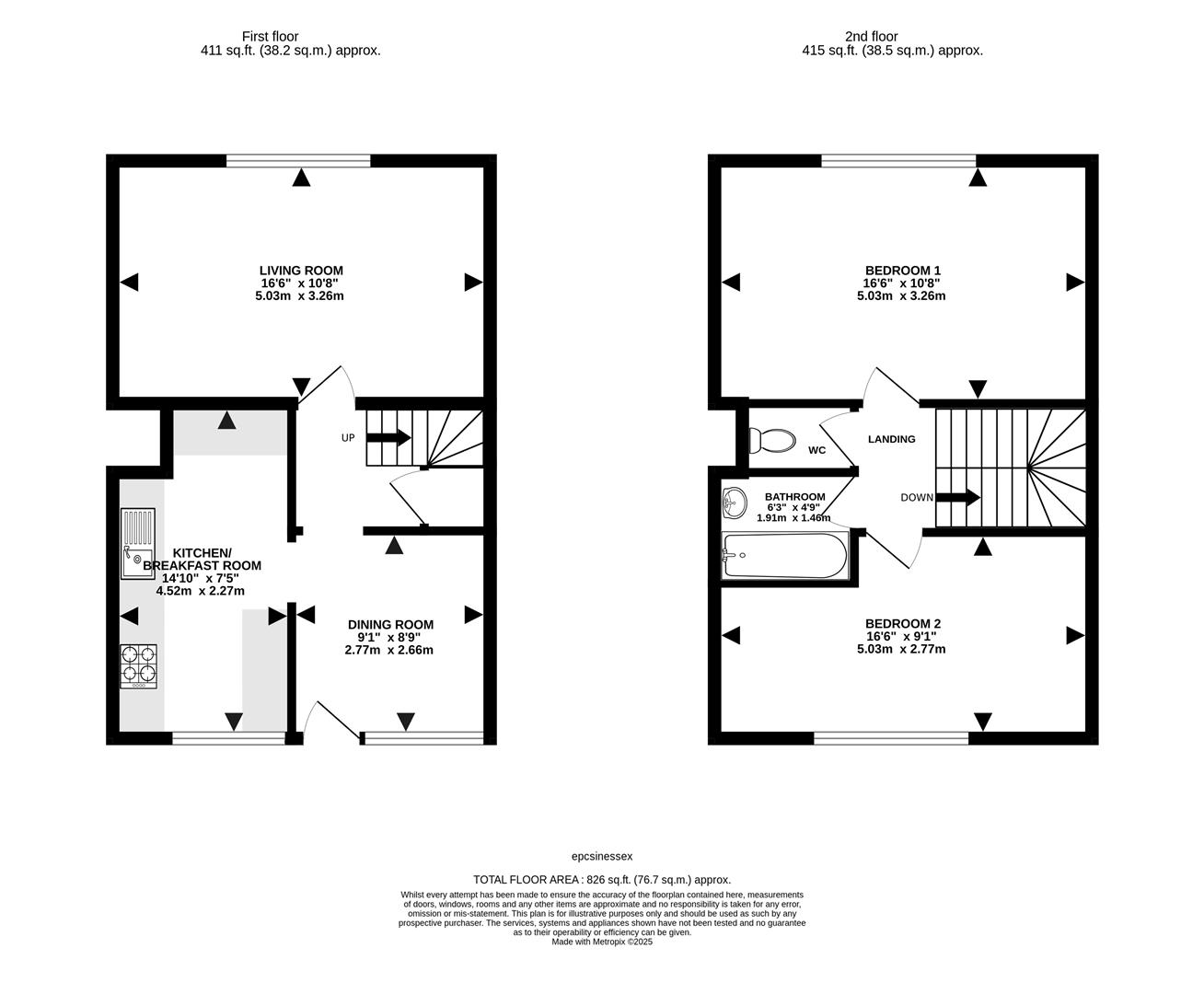 Arranged over two floors, the property boasts a stylish, modern kitchen fitted with a range of eye and base level units complemented by contrasting worktops. To the rear, a spacious living room is enhanced by a large window, allowing an abundance of natural light to fill the space. A separate dining room completes this level. Upstairs, the property offers two generously sized double bedrooms, a contemporary bathroom, and a separate W.C., providing comfort and practicality for modern living.
