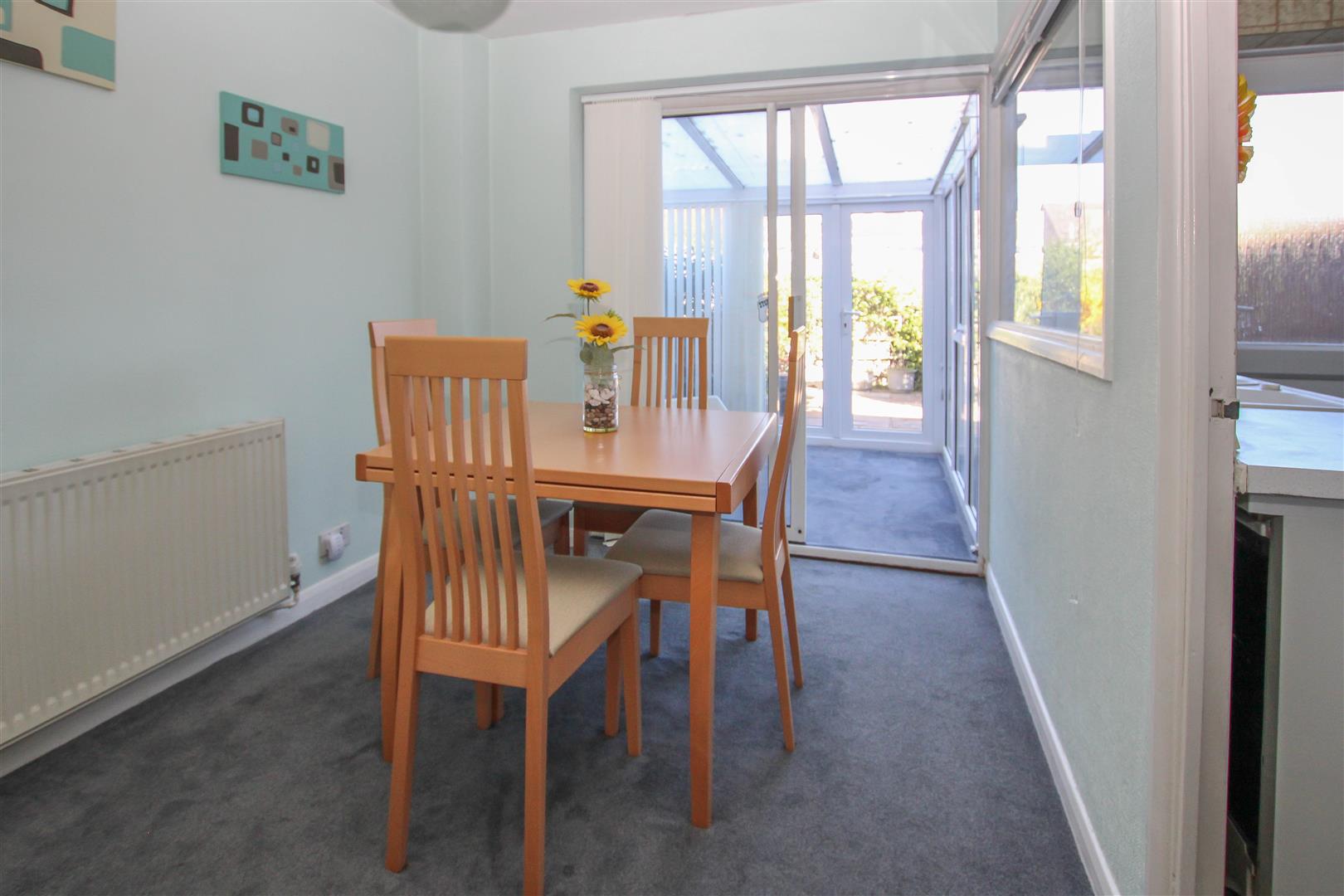 The property begins with an entrance porch that leads into a bright and spacious lounge, offering a comfortable living area. This flows through to a separate dining room with double sliding doors opening into a conservatory-an ideal spot to enjoy views of the garden and a space that connects indoor and outdoor living. The kitchen is fitted with a range of eye- and base-level units and provides access to the rear garden. While functional, the space offers scope for updating to suit modern tastes. A ground floor WC completes this floor.