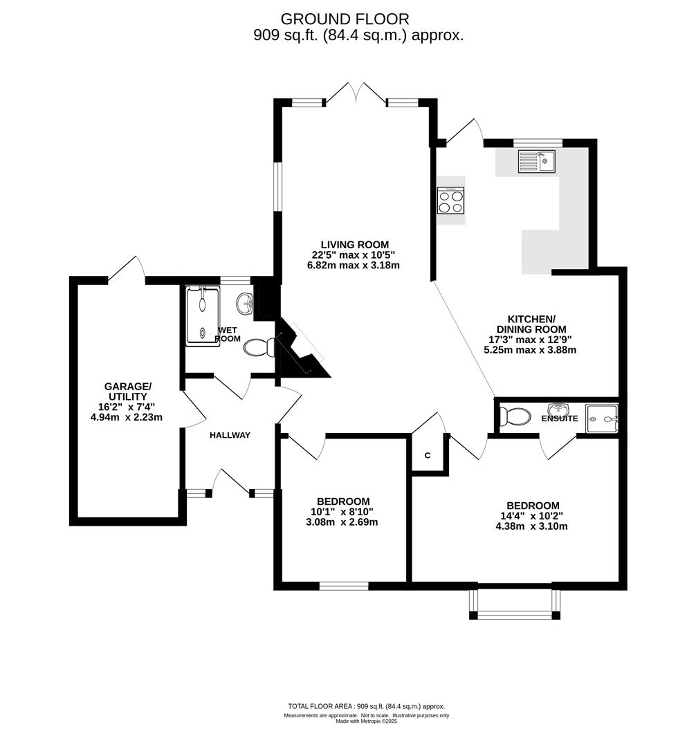 To the front of the property are two double bedrooms, with the principal bedroom benefitting from an ensuite shower room. A bright, modern wet room and an integral garage/utility area complete the interior accommodation.
