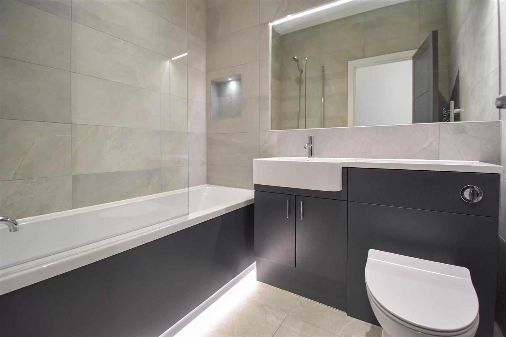 The property has two double bedrooms with the master bedroom having built-in storage and access to its own, fully tiled shower room with double shower. Furthermore, there is a fully tiled, main family bathroom with panelled bath which also has a shower over, wash hand basin and w.c.