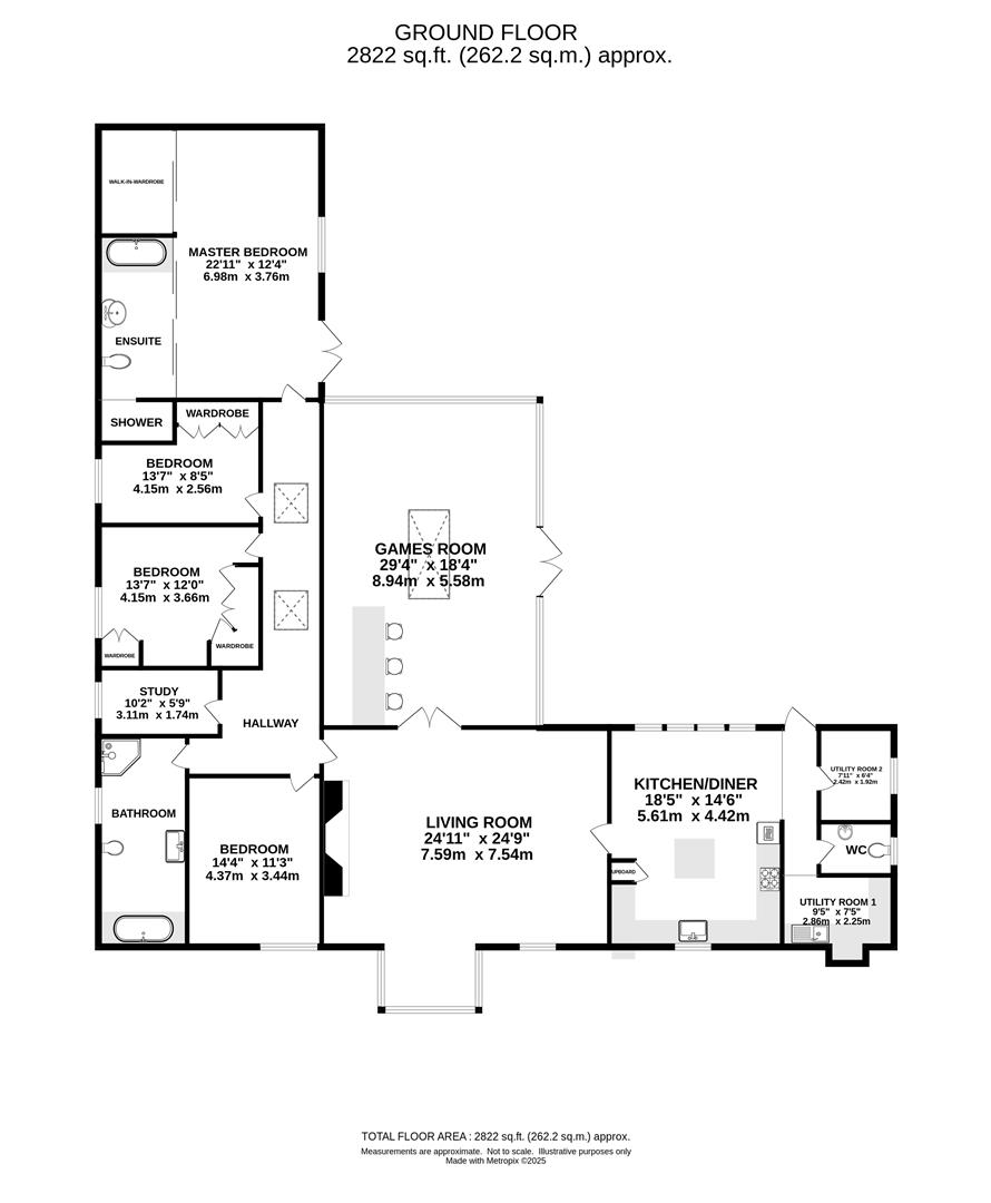 The property has four good-sized bedrooms with either built-in storage or space for freestanding furniture. The master bedroom is a large room which has French doors that open directly into the garden, allowing you to enjoy the lovely views that this room has to offer. The master bedroom further benefits from having a walk-in wardrobe and access into a large en-suite with bath, separate walk-in shower, wash hand basin and w.c. On this side of the property there is also a spacious family bathroom with bath, separate shower cubicle, wash hand basin and w.c. Finishing the accommodation is a study which provides those working from home a quiet place in which to work.