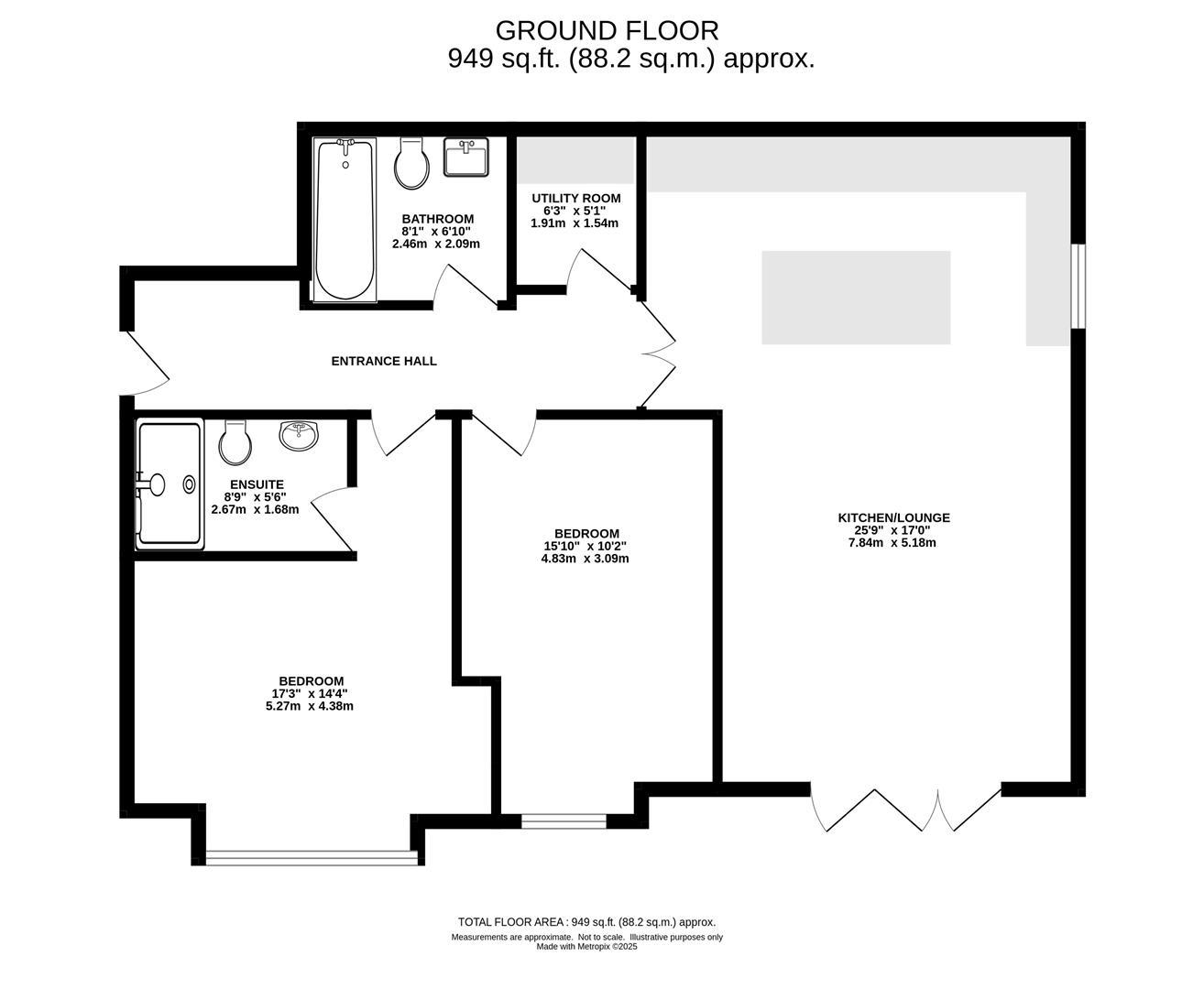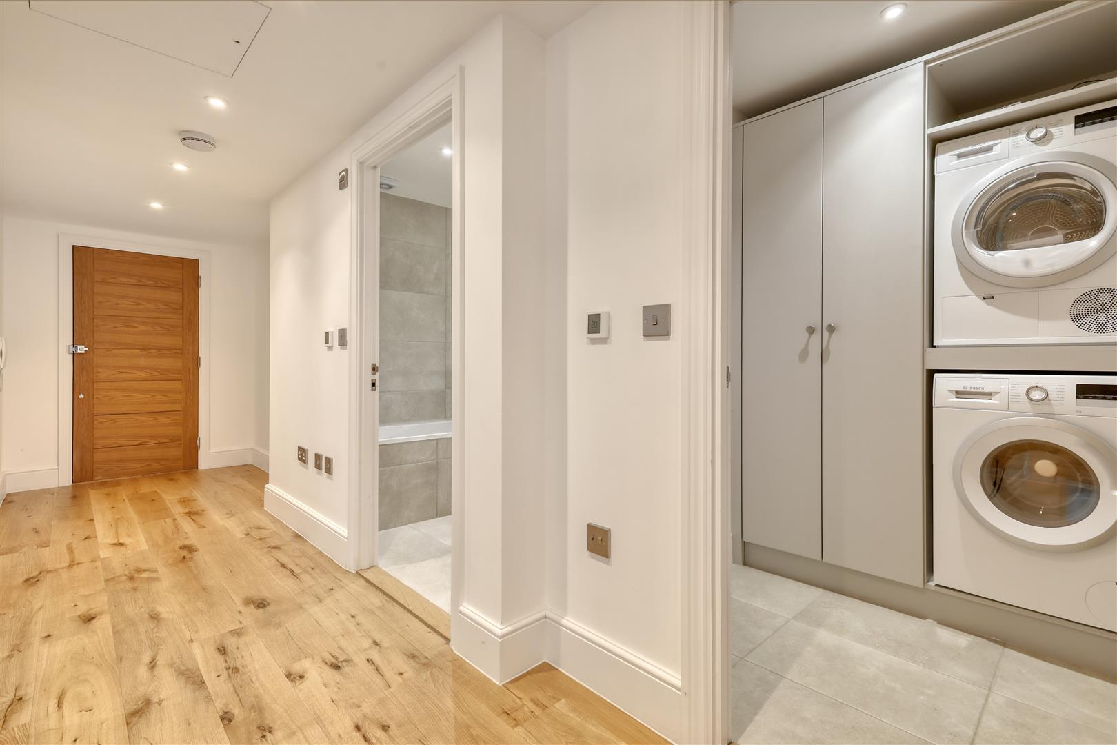 Apartment 2 - 949 sq. ft. This beautifully presented apartment begins with a spacious entrance hallway providing access to all rooms. At the heart of the home is a stunning open-plan kitchen and lounge area, flooded with natural light from a side window and bi-folding doors that open onto the private terrace. The contemporary kitchen is fitted with elegant Crabtree & Hargreeves wall and base units, including a central island with a breakfast bar. Integrated appliances include fridge/freezer, oven, microwave and induction hob with extractor above. A separate utility room offers additional storage and space for white goods.