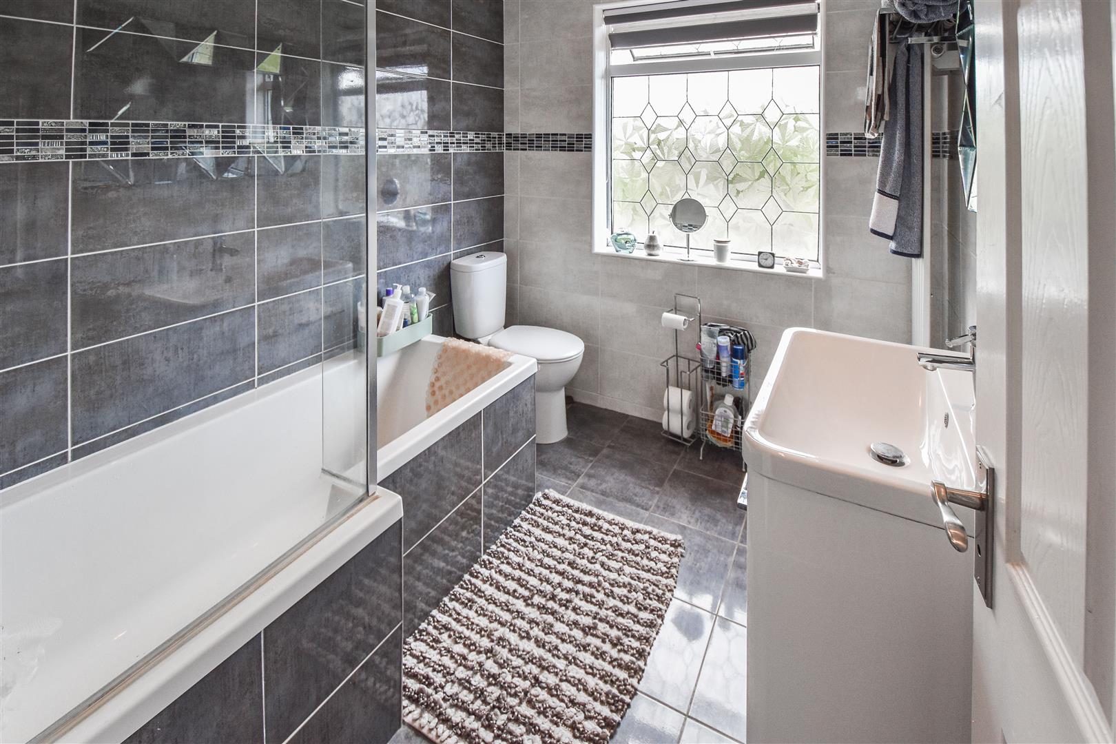 Family Bathroom - 2.49m x 2.24m (8'2 x 7'4) - Fully tiled. L-Shaped bath with shower over. Wash hand basin and close coupled w.c.