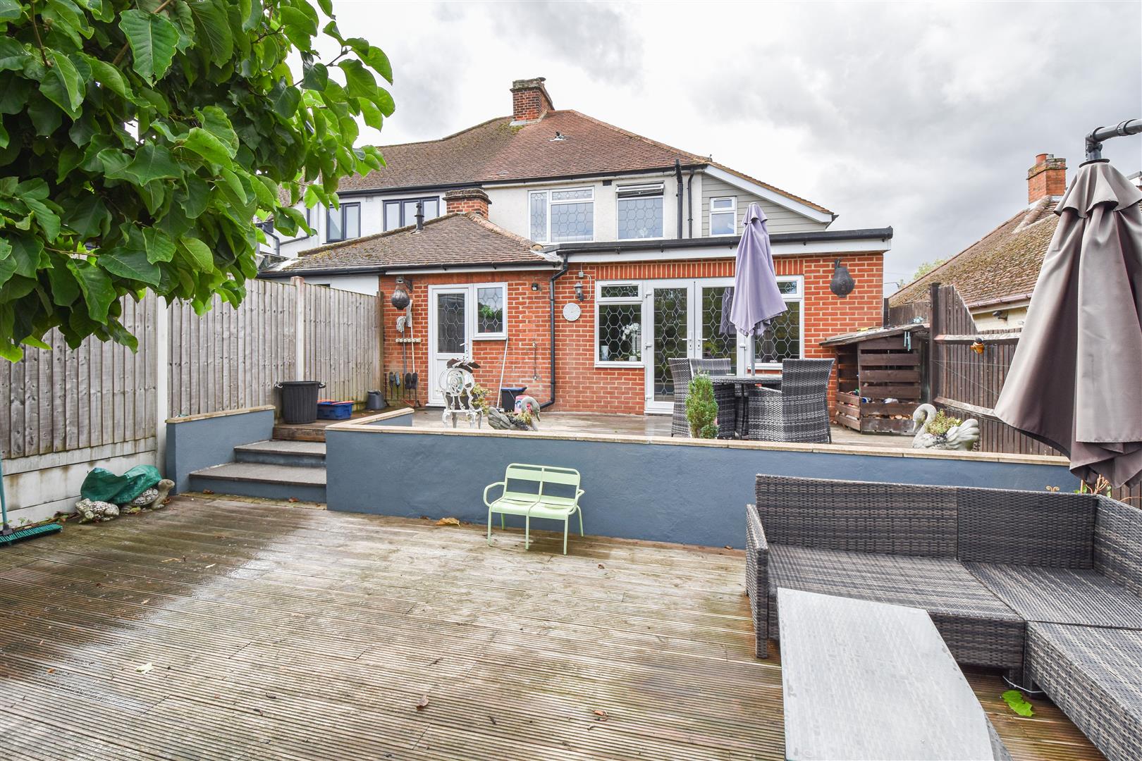 Exterior - Rear Garden - in excess of 45.72m (stls) (in excess of 150' (stl - Commencing with a decked patio, with steps down to further decking area. Remainder is predominantly laid to lawn with a section to the bottom of the garden being laid to bark. Timber shed to remain.