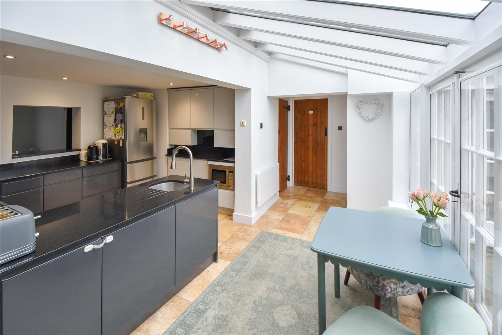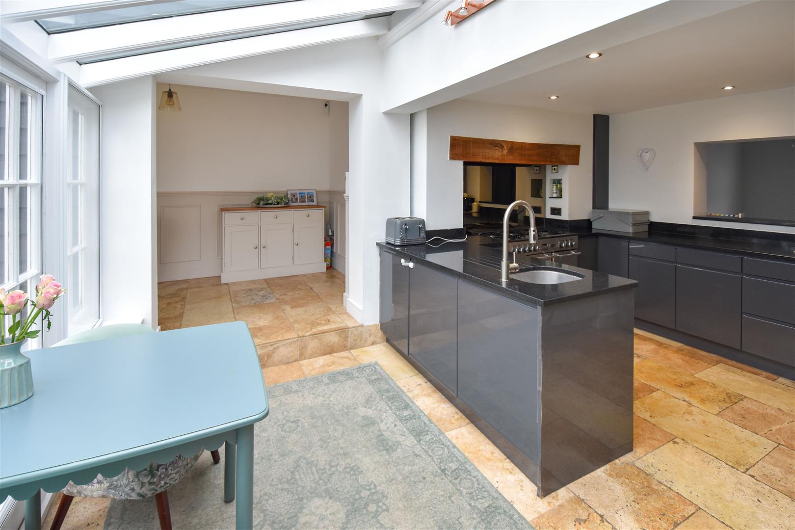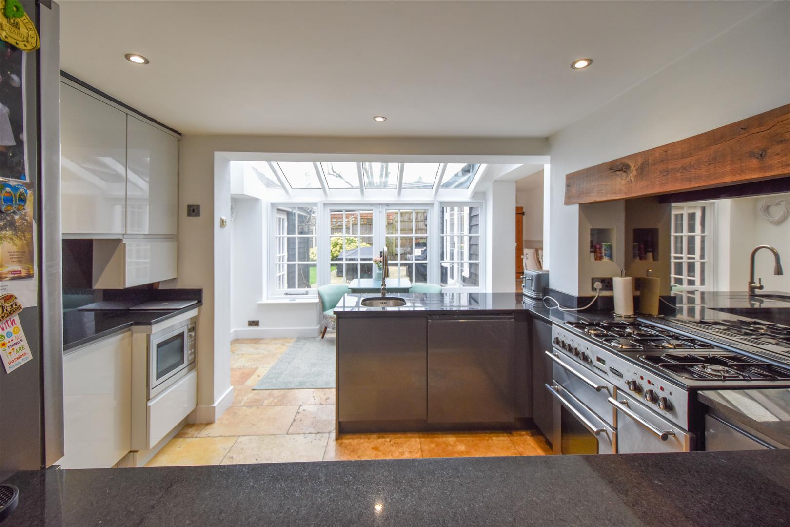 Kitchen - 3.23m x 2.44m (10'7 x 8') - High gloss wall and base units with granite work surfaces over. Tiled flooring with underfloor heating which extends into the breakfast room. French doors to garden.