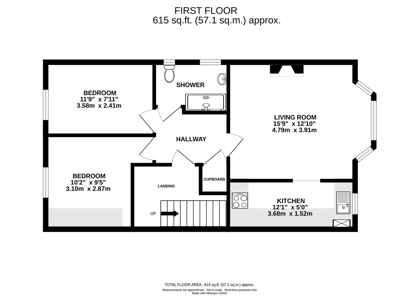 There are two comfortable double bedrooms, with the principal bedroom benefiting from built-in wardrobes. A modern shower room completes the interior.