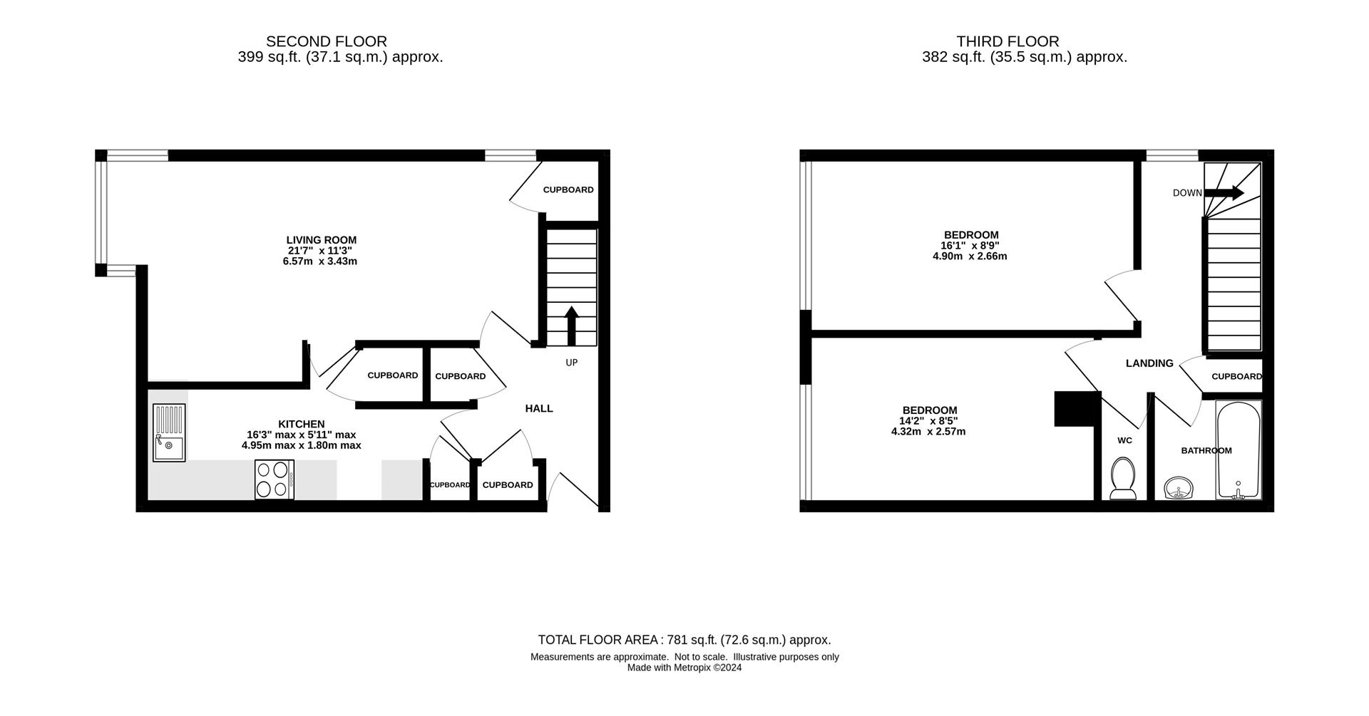 The apartment itself benefits from a westerly aspect and has a good sized entrance hallway giving access to the lower level rooms and with stairs rising to the upper level. There are a couple of convenient large storage cupboards, perfect to drop off your coats and shoes before heading further inward, where you will find the fitted kitchen, offering a good range of cupboards at both base and level with contrasting work surfaces. A door leads you through into the spacious living room with a square bay window at one end flooding the area with natural light, and offering plenty of space for your sofas and armchairs, plus a dining table should you so wish. Moving to the upper level you will find a good sized landing giving access to two large bright and airy double bedrooms with great views across Brentwood and beyond to London, plus, completing the accommodation there is a family bathroom and a separate wc. In addition it should be noted that all the windows are UPVC double glazed and the gas heating is via a regularly serviced Valiant boiler, plus there is also a recently installed electric consumer unit