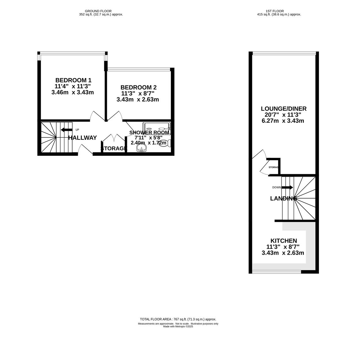 Arranged across the ground and first floor, the property is well presented throughout and benefits from large windows that fill the rooms with natural light. The ground floor comprises two generously sized bedrooms and a modern shower room. Upstairs, a bright and spacious lounge/diner offers the perfect space to relax or entertain, complemented by a well-appointed kitchen.