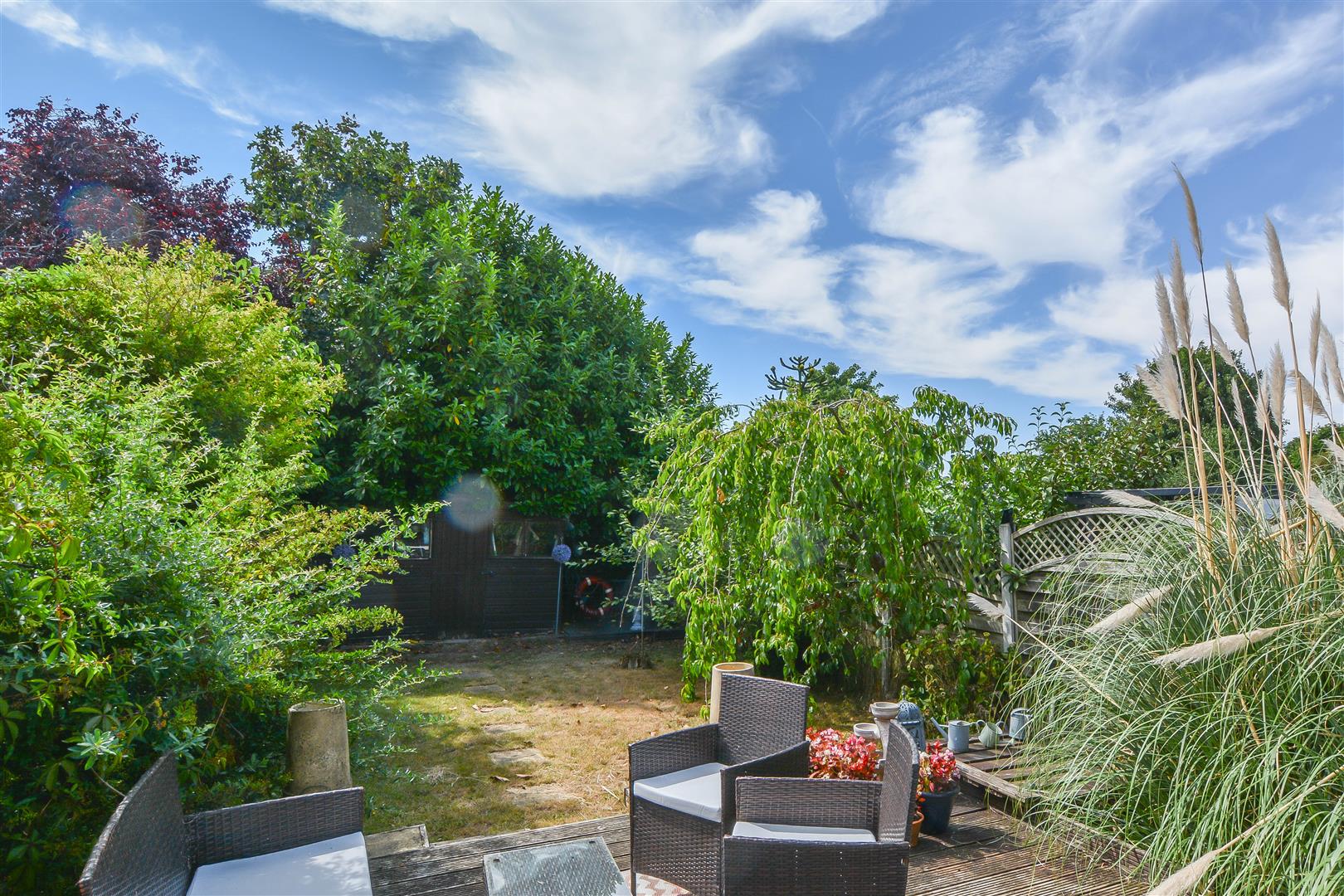 Outside, the property boasts a generously sized rear garden, beginning with a raised decked area perfect for outdoor dining, with the remainder laid mainly to lawn and bordered by mature shrubs for added privacy. To the front, a block-paved driveway offers off-street parking for two vehicles.