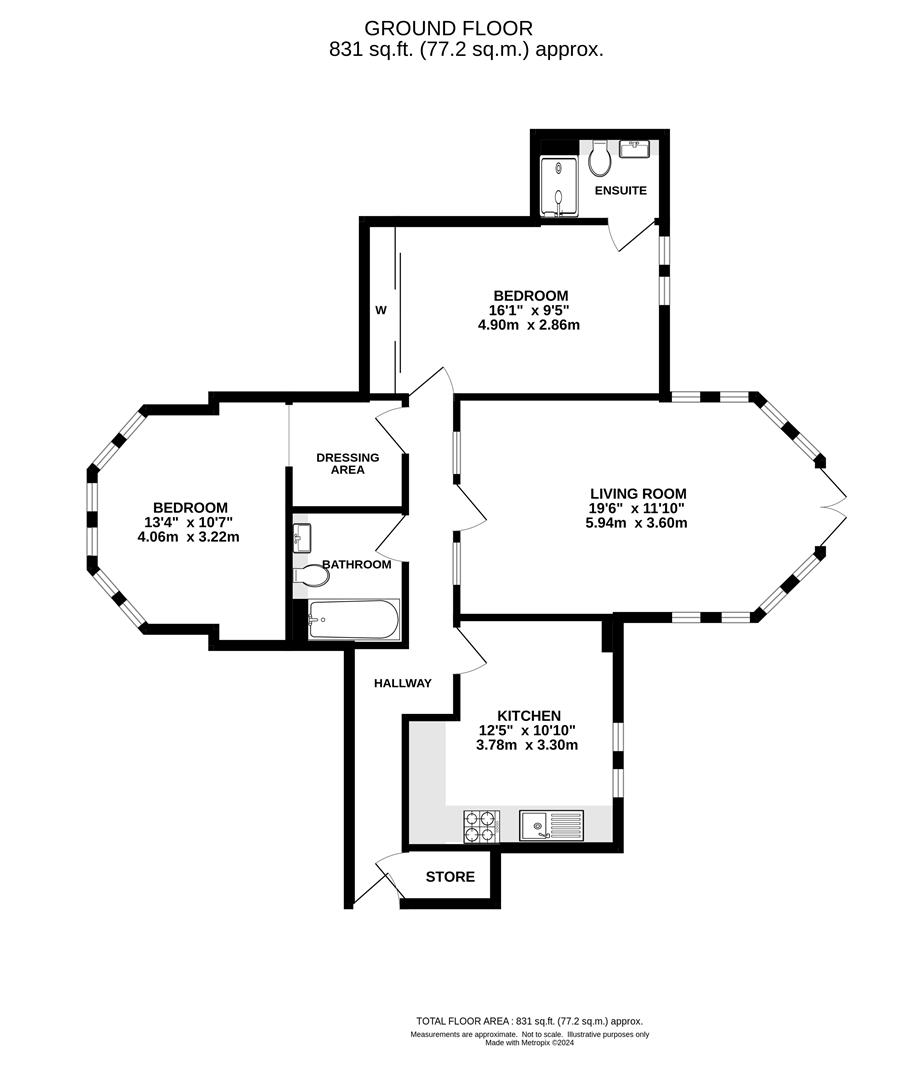 Upon entrance the hallway gives access to all rooms. The fitted kitchen, complete with a comprehensive range of white gloss wall and base units has a range of built-in appliances and plenty of space for full dining suite. The bright spacious living room provides access via double doors out to the apartments own private garden.