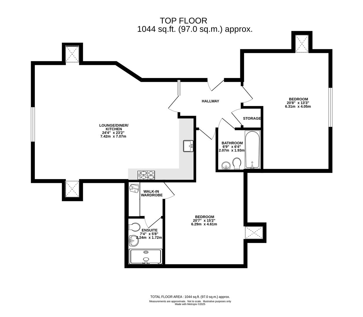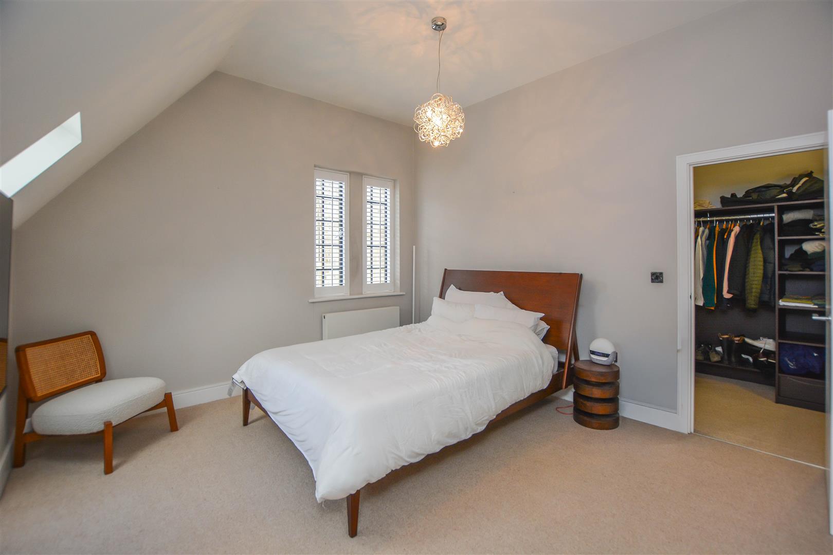 There are two generous double bedrooms, with the principal bedroom boasting a walk-in wardrobe and a luxurious ensuite shower room. A pristine family bathroom with a modern white suite completes the accommodation.