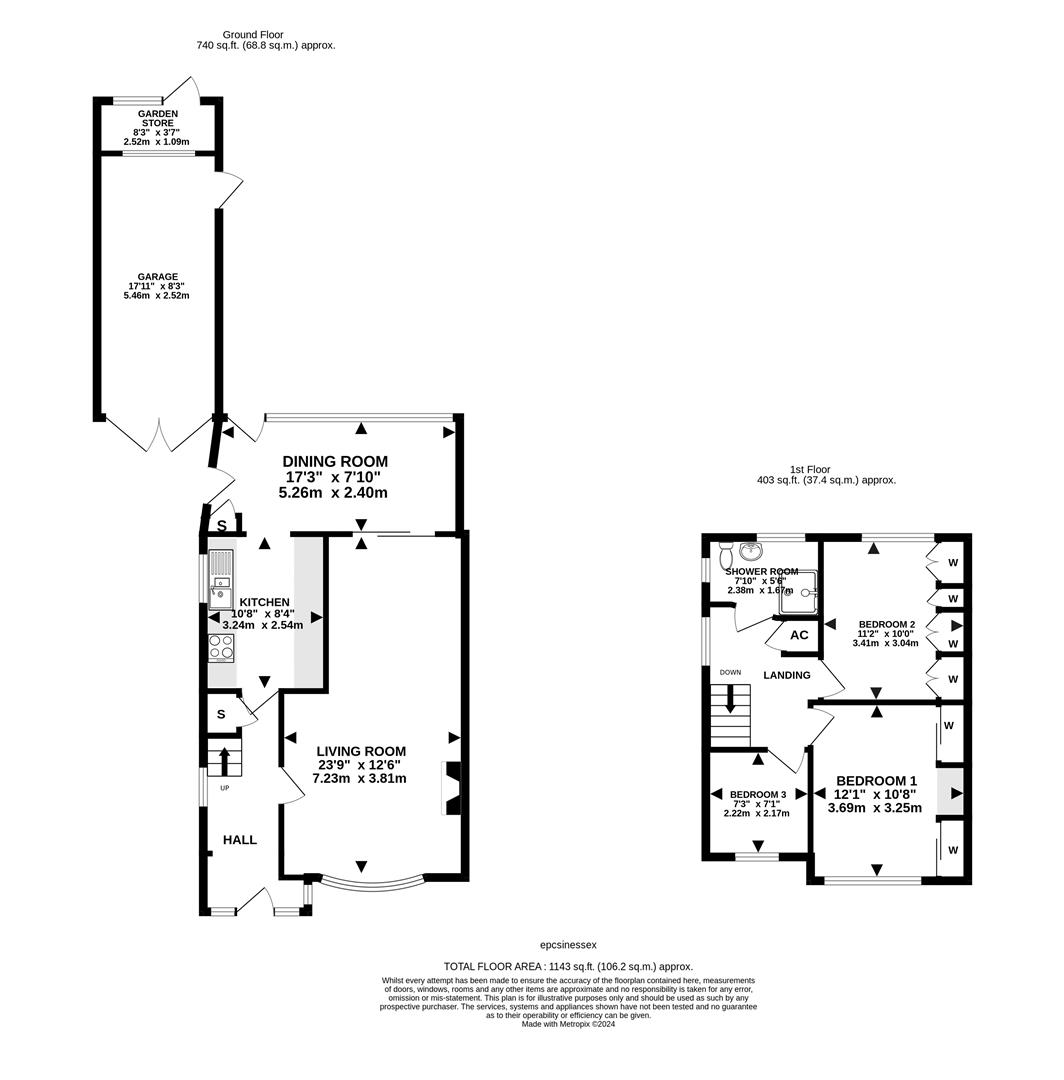 Ascending to the first floor, you'll find two generously proportioned double bedrooms, both with built-in wardrobes. A third single bedroom offers versatility as a guest room or home office and completing this level is the shower room.