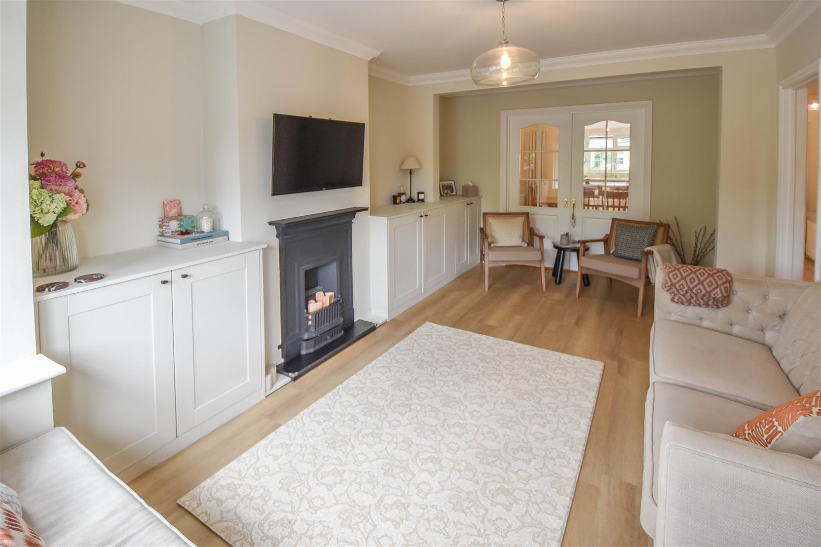 Living Room - 5.89m x 3.35m (19'4 x 11') - Bay window to front with fitted window seat. Feature fireplace with with built in storage to side. Double doors through to :