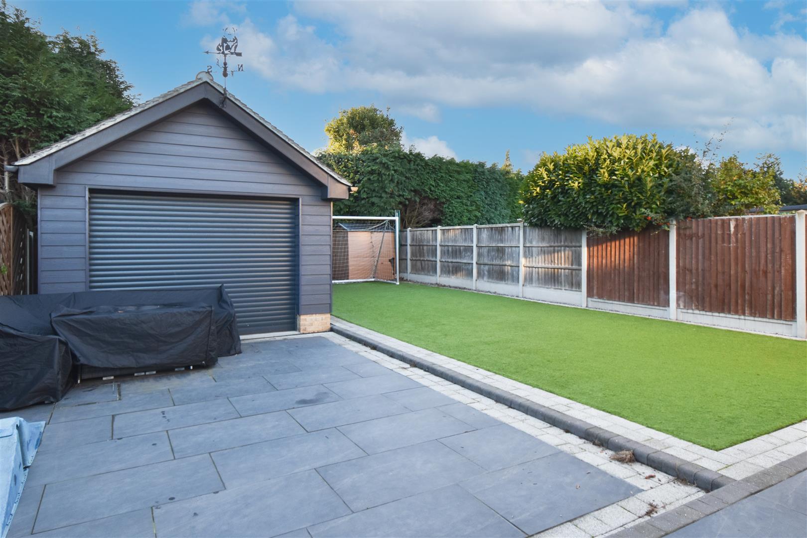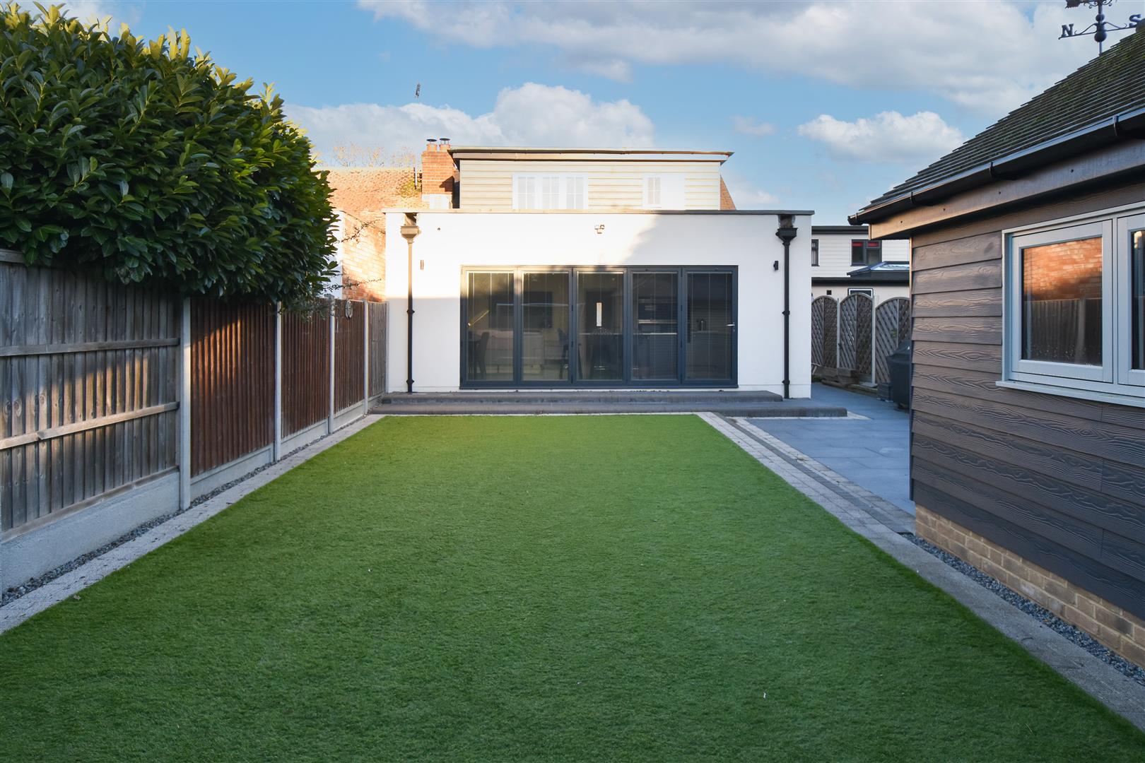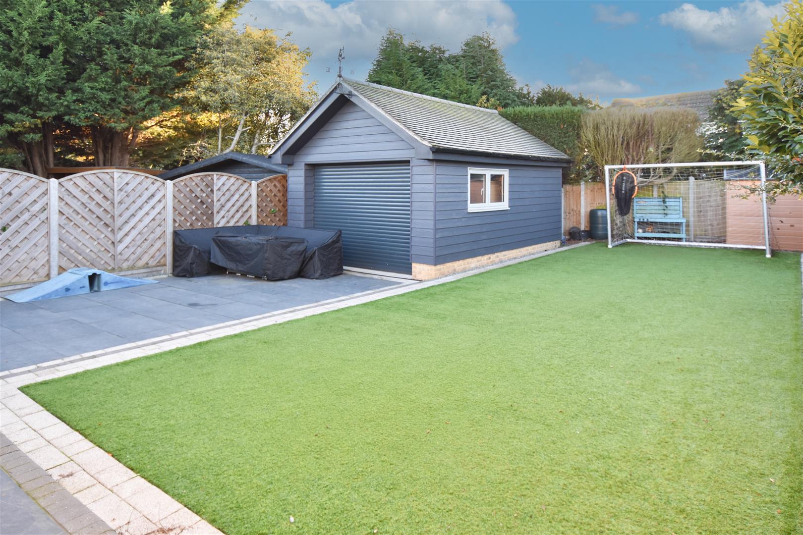 Exterior - Rear Garden - Landscaped rear garden. Paved patio in front of the garage and to the side of the property. Remainder laid to artificial lawn for low maintenance. Double gates at the side give access to the front.