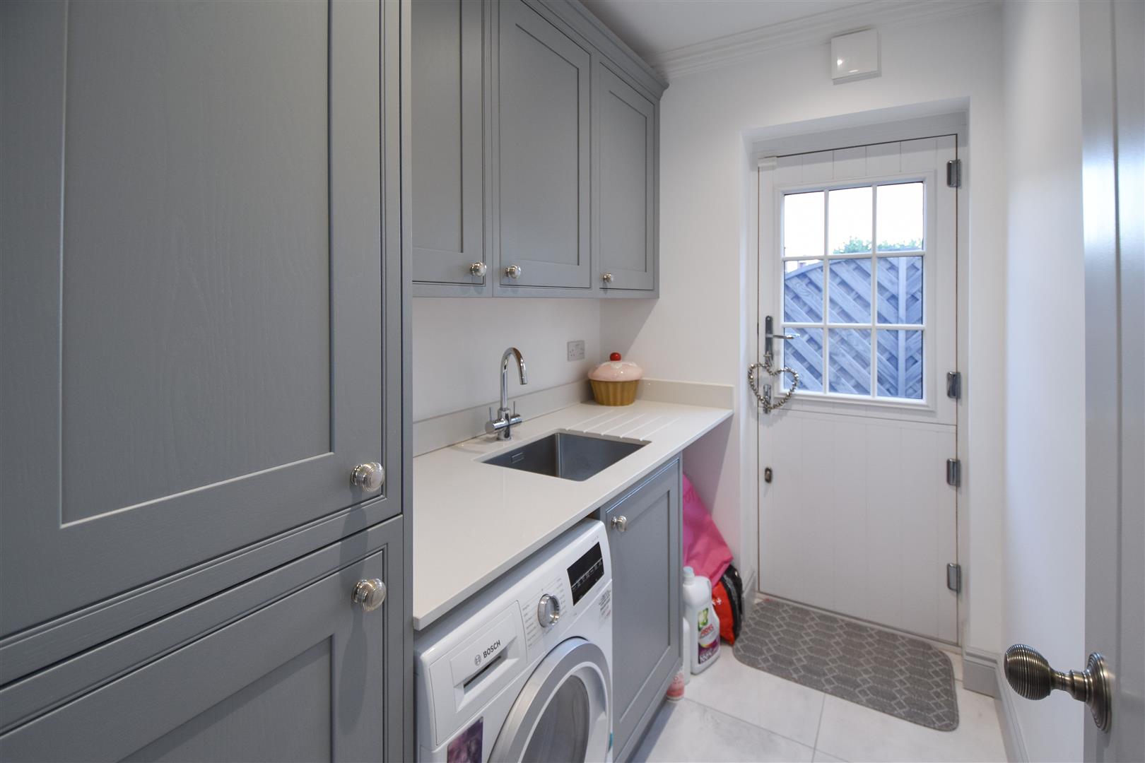 Utility Room - 2.44m x 1.60m (8' x 5'3) - Wall and base units with inset sink unit. Space and plumbing for further appliances. Door to side giving access into the garden.