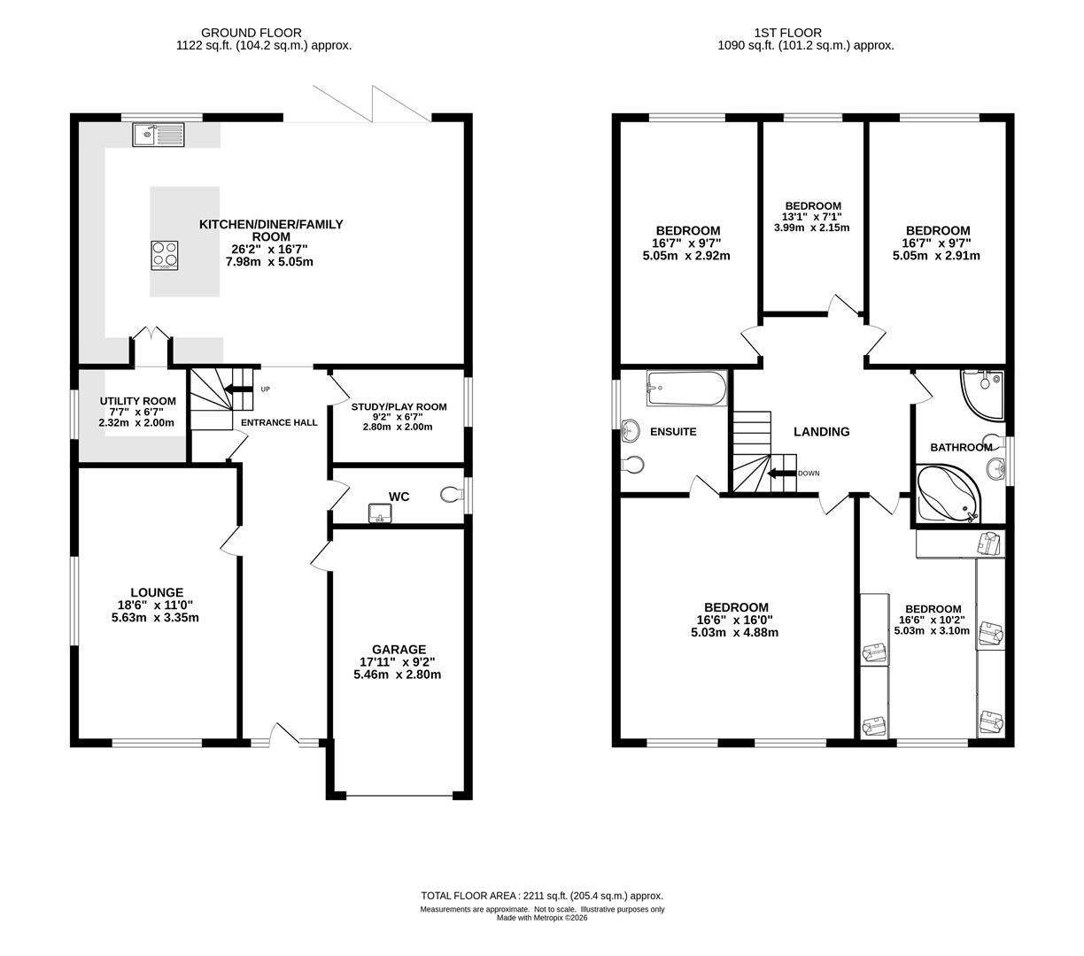 Rising to the first-floor level, a spacious landing has doors to all bedrooms along with the family bathroom. There are five, well-proportioned, double bedrooms. One of the bedrooms is currently being used as a dressing room, fitted with an extensive range of modern wardrobes. The master bedroom is a lovely room, affording lots of space and light through two windows to the front elevation. A door leads into a good-sized en-suite bathroom with panelled bath, wash hand basin and w.c. Finishing the accommodation on this level is a family bathroom which comprises of a corner shower cubicle, panelled bath, wash hand basin and w.c. The Vendor has made us aware that all widows and doors (including the front door and bi-folds) were replaced approximately 3 years ago.