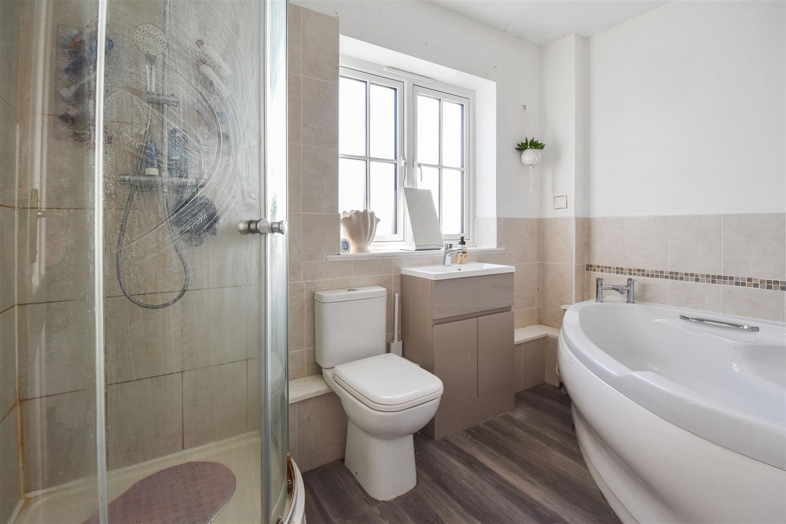 Main Family Bathroom - Corner bath, separate corner shower cubicle, wash hand basin and w.c.