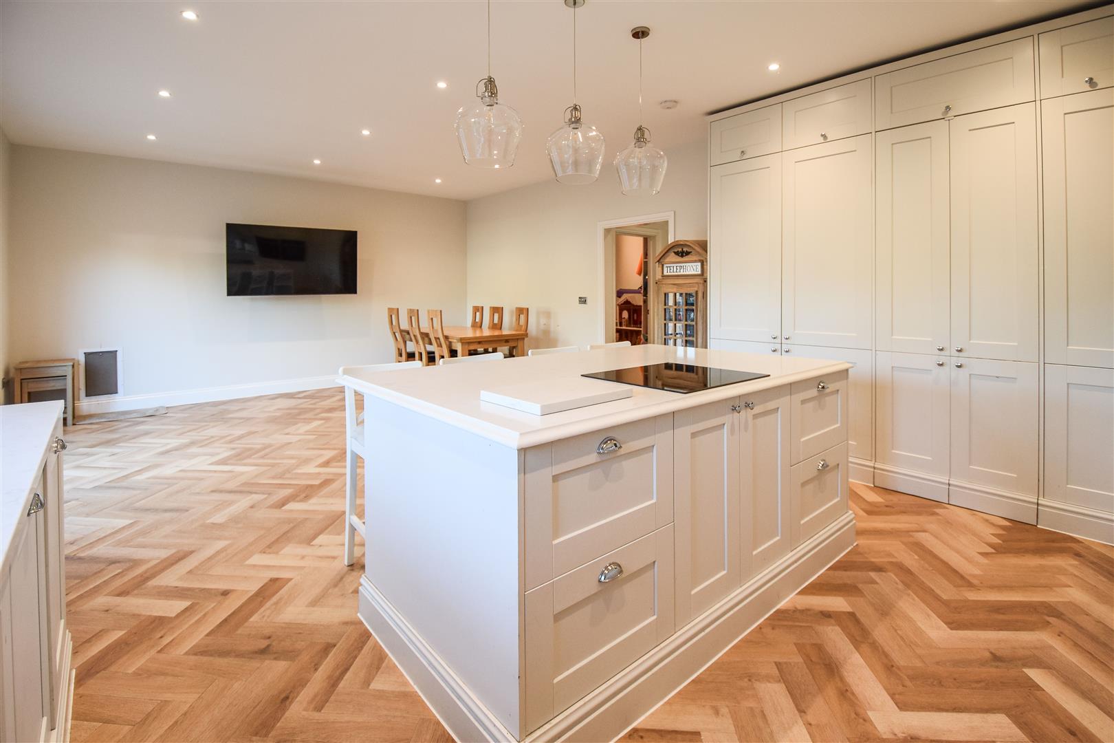 Kitchen / Diner / Family Room - 7.98m x 5.05m (26'2 x 16'7) - Bi-folding doors to the rear opening onto the garden. Bespoke wall and base units with quartz work surfaces over fitted to the kitchen area. Island unit with hob and further storage. Integrated appliances include double ovens, fridge/freezer and dishwasher. Doors to :