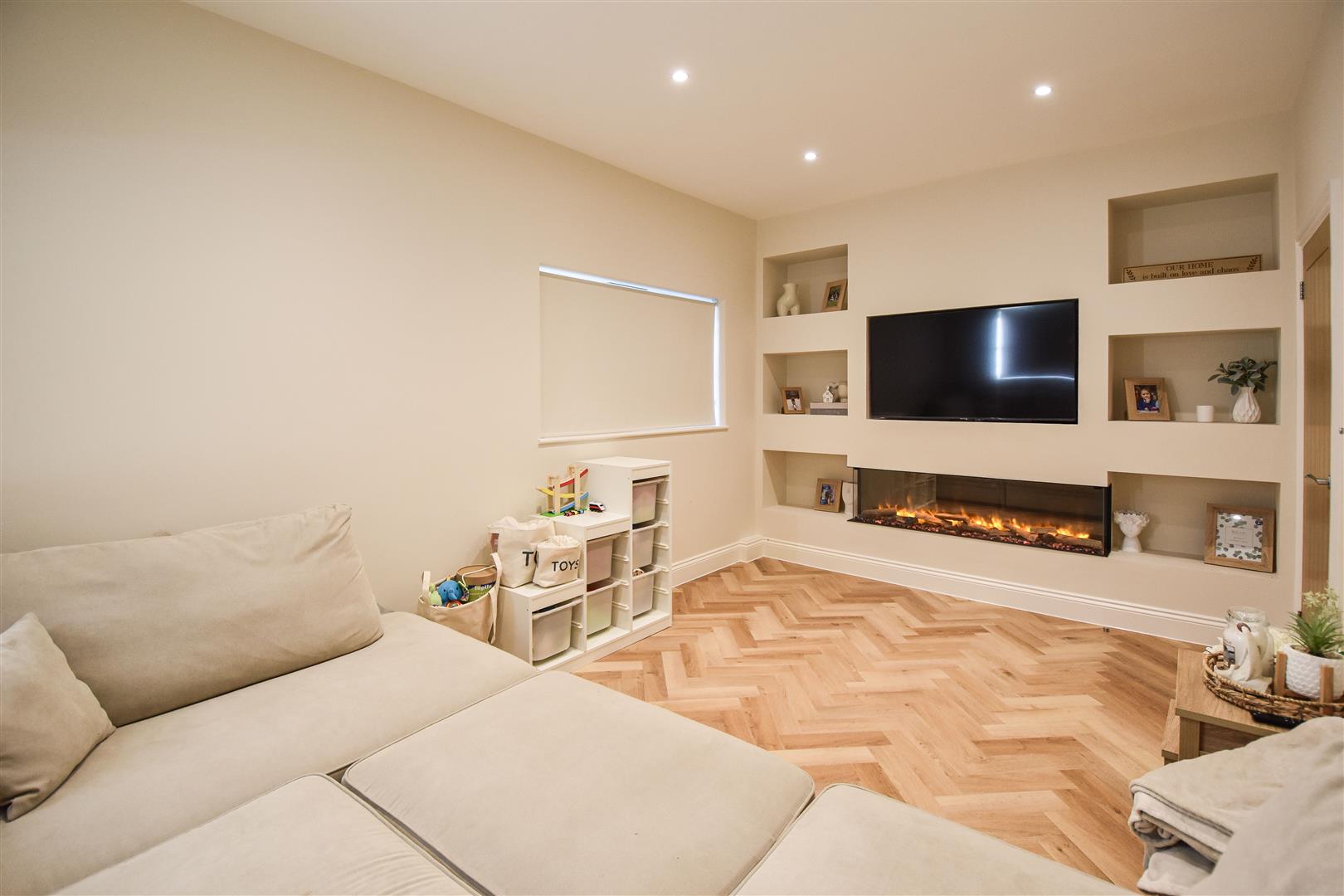 Lounge - 5.64m x 3.35m (18'6 x 11') - Windows to front and side aspects. Media wall with inset, contemporary fire below.