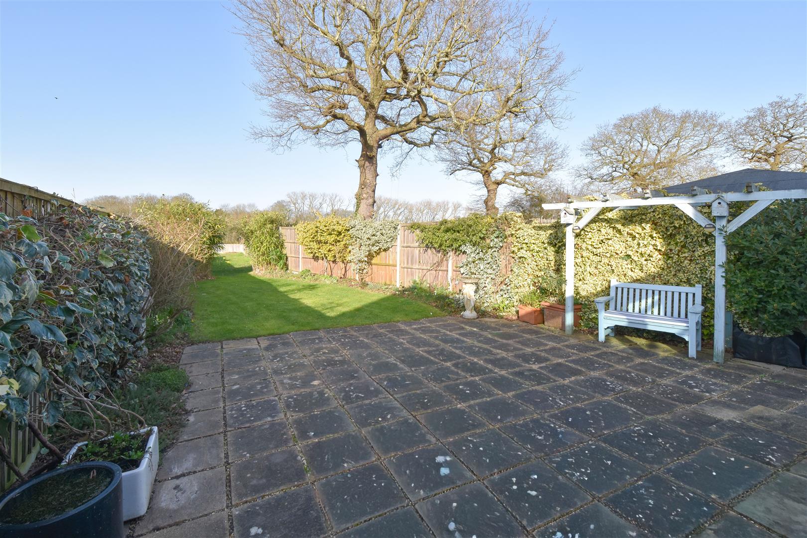 Exterior - Rear Garden - Long rear garden backing onto fields. Commencing with a paved patio. Side access through to the front of the property.